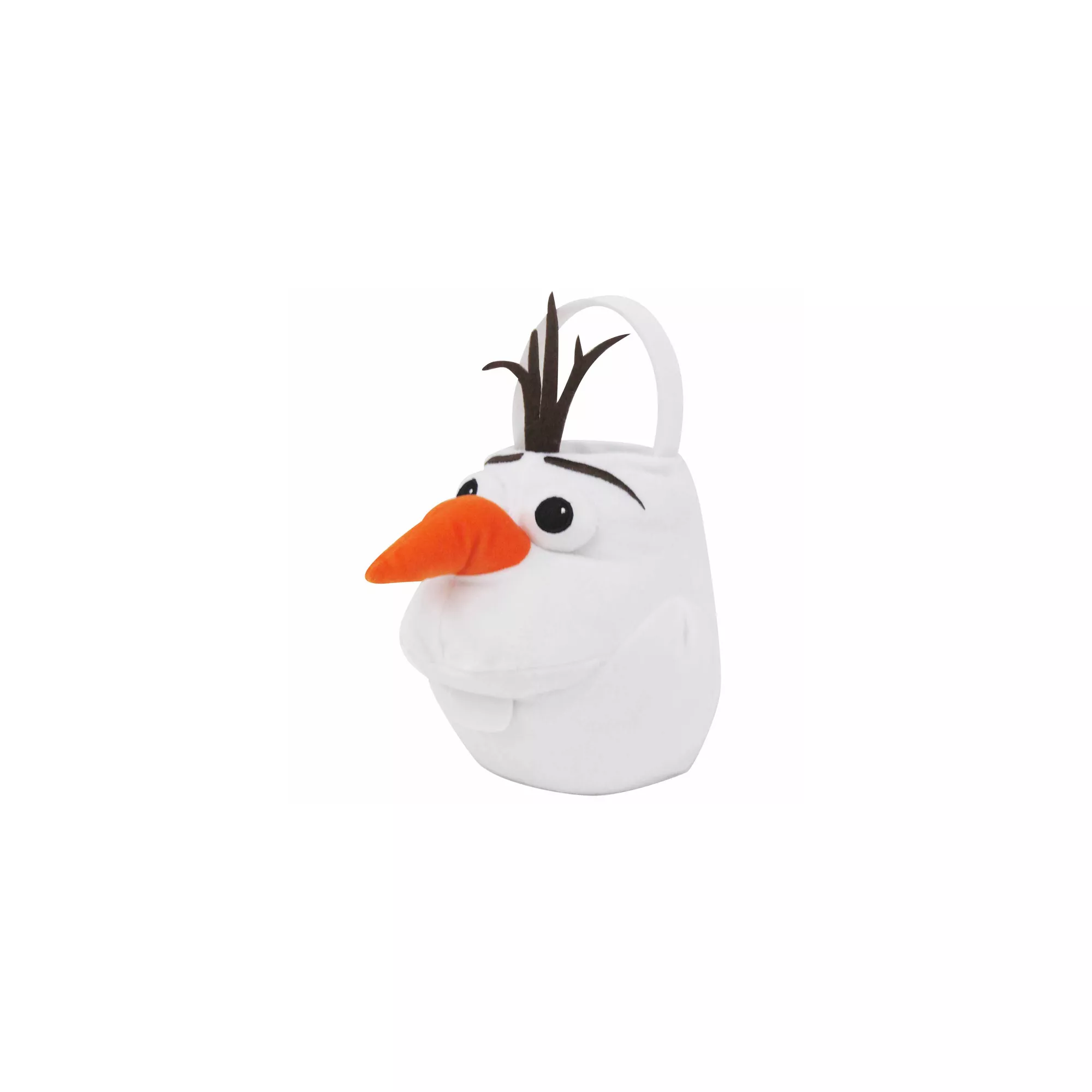 Collect your candy on Halloween in the head of your favorite snowman when you use the officially licensed Disney Frozen Olaf Plush Bucket. This white candy bucket features awesome character face details, including a pointy orange nose, and a few strands of hair.