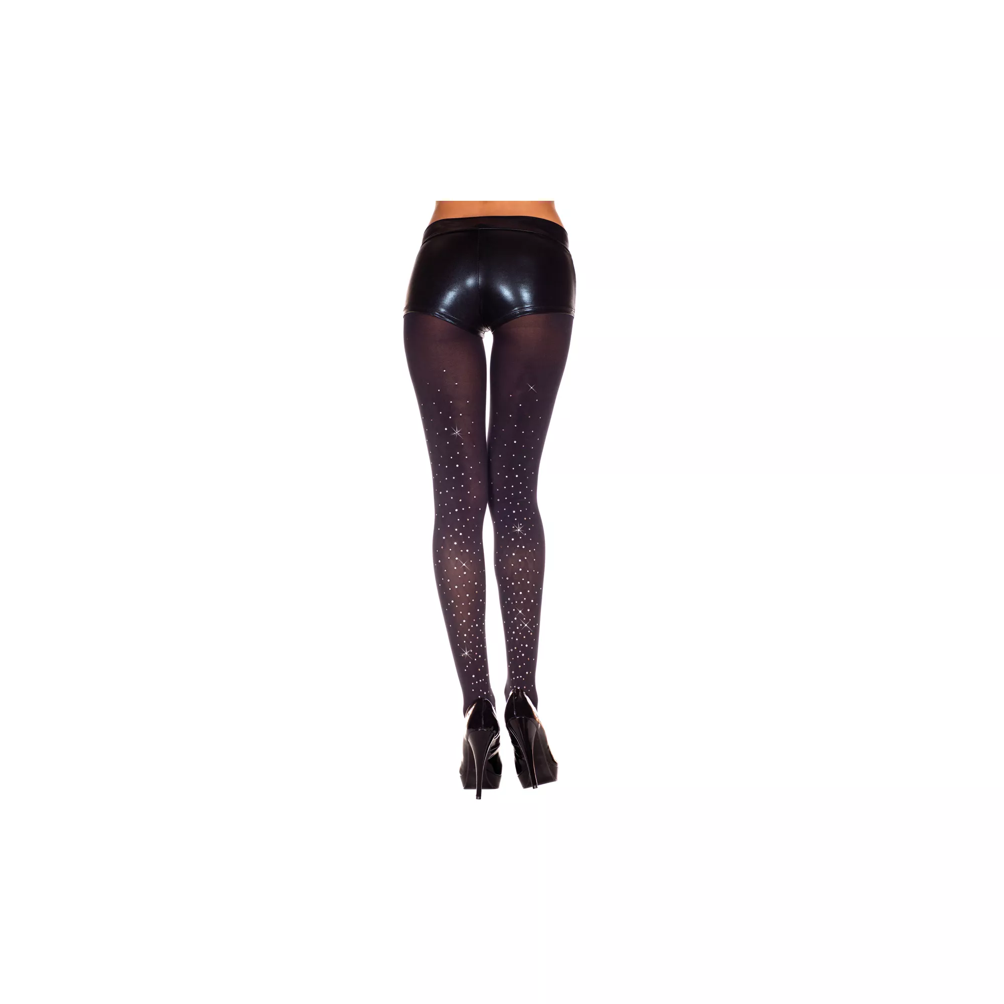 Add some sparkle to your look with the Opaque Full Rhinestone Tights. These black nights have a trail of rhinestones up the back of the leg. Perfect with a slinky dress or if you want to be a galaxy warrior, the rhinestones look like a starry night.