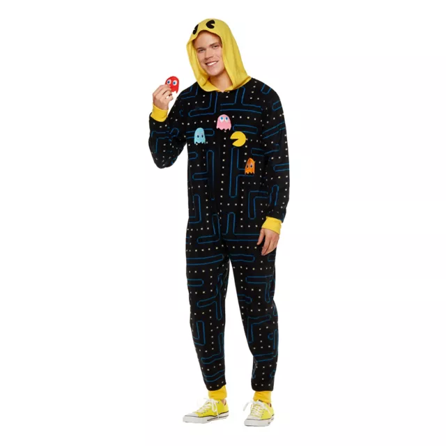 Keep calm and om nom on in this Pac-Man pajama costume! You'll be showing off iconic game design in this comfy one piece that's perfect for parties or bedtime, and you're sure to stay super comfortable all night long.