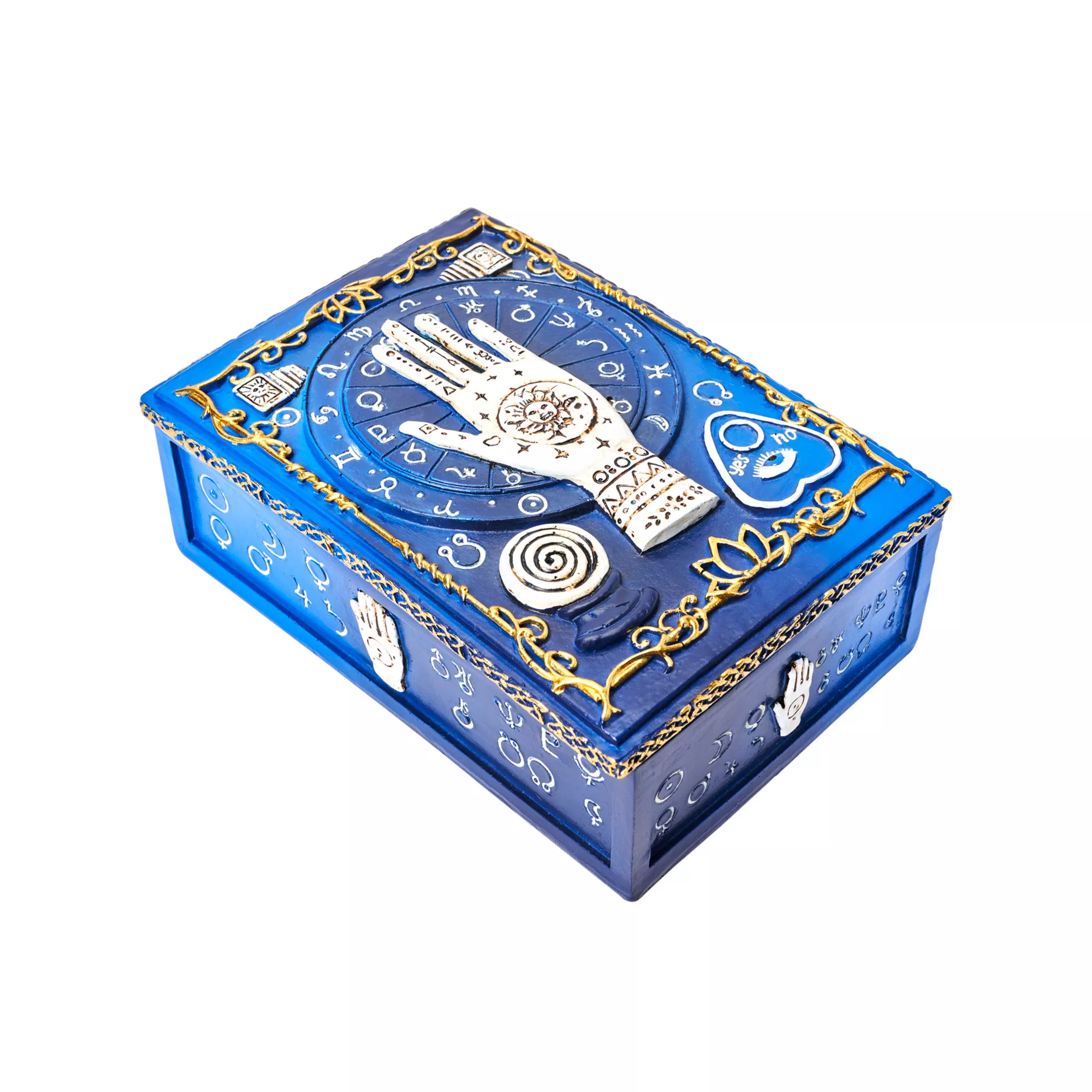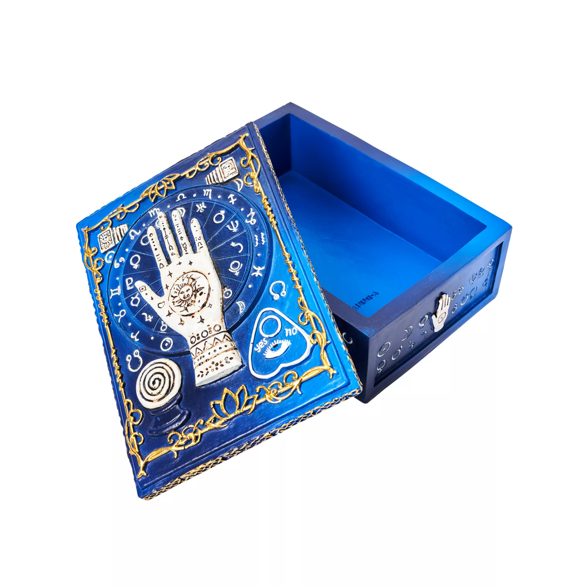Show off your love for tarot with this palmistry storage box. You can tuck away your most essential possessions and stay organized in style.