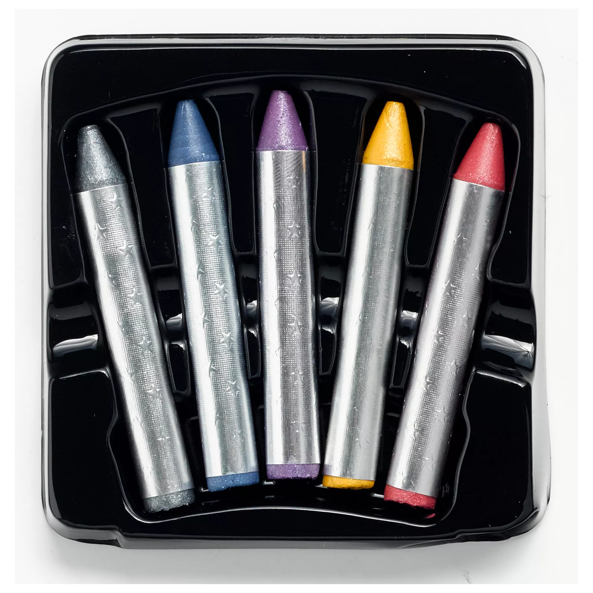 Transform your look and create a new and enhanced identity with this set of five Pearlescent Makeup Crayons in gray, blue, purple, orange and pink.