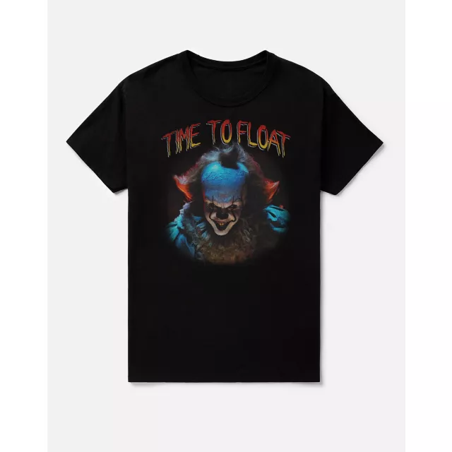 Dare to wear the fear. This officially licensed Pennywise T Shirt captures the terrifying essence of Stephen King's iconic clown with a haunting graphic and the infamous phrase "Time To Float" that sends shivers down your spine! This tee features a detailed image of Pennywise himself, making it the perfect t shirt for horror fans.