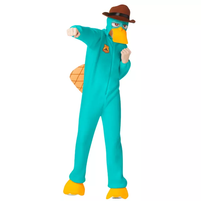 Complete your top secret candy mission in the Officially Licensed Phineas and Ferb Perry Dual-pajama Body Child Costume. This house pet packs a mean punch in this blue pajama style jumpsuit with attached platypus hood and agent's hat.