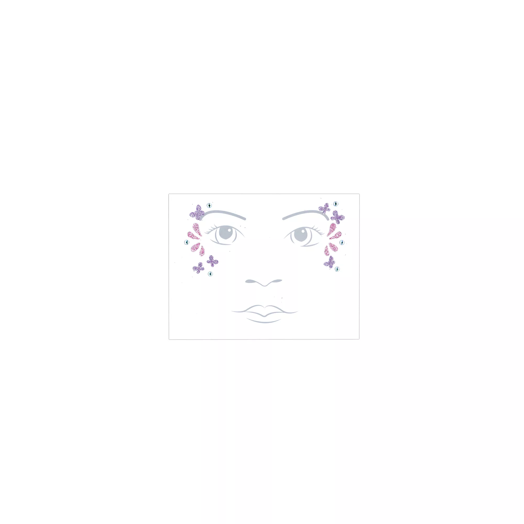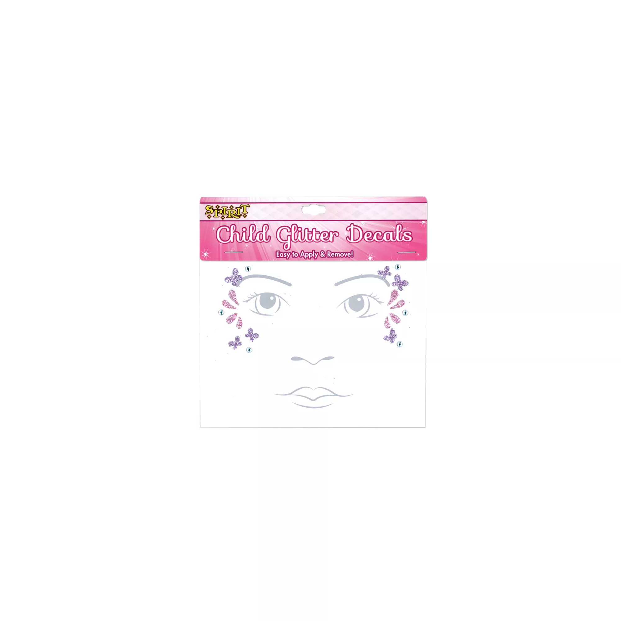 You'll break out of the cocoon with the Officially Licensed Pink and Purple Butterfly Child Facial Decal. Features dainty, glitter purple butterflies and pink petal decals.