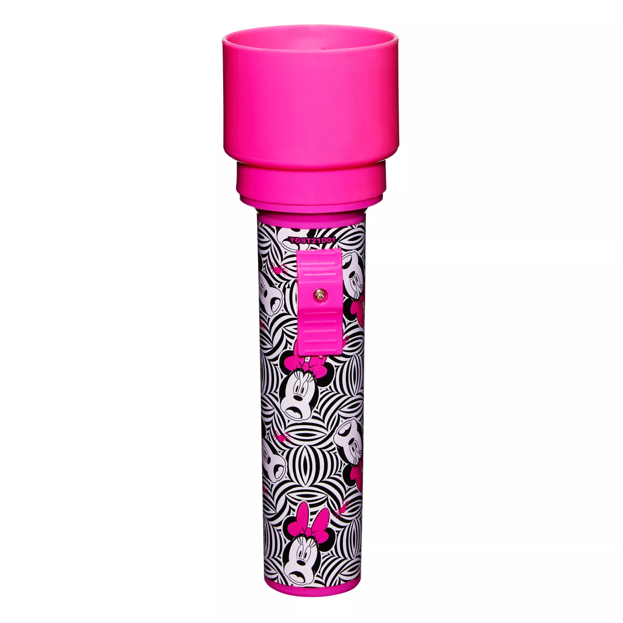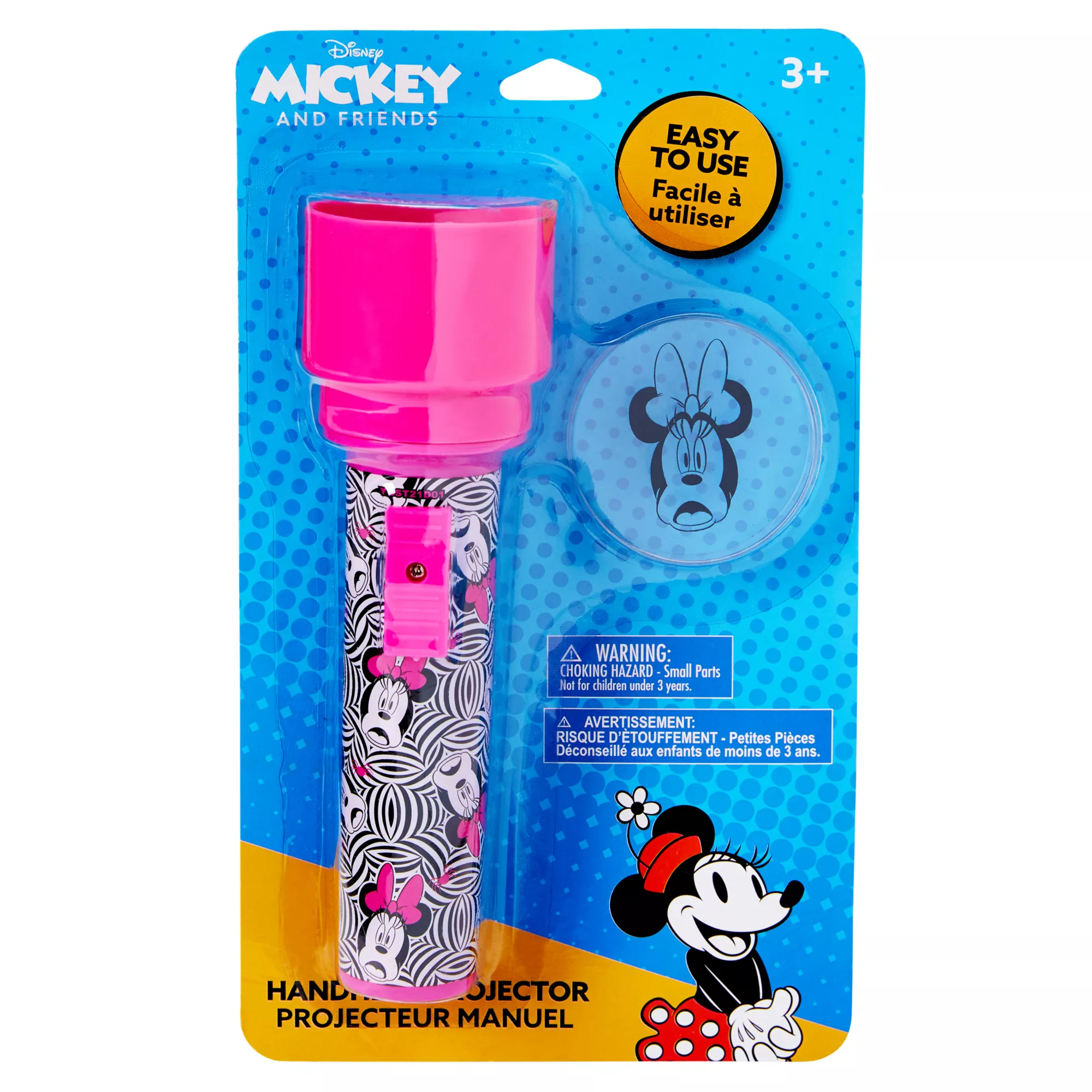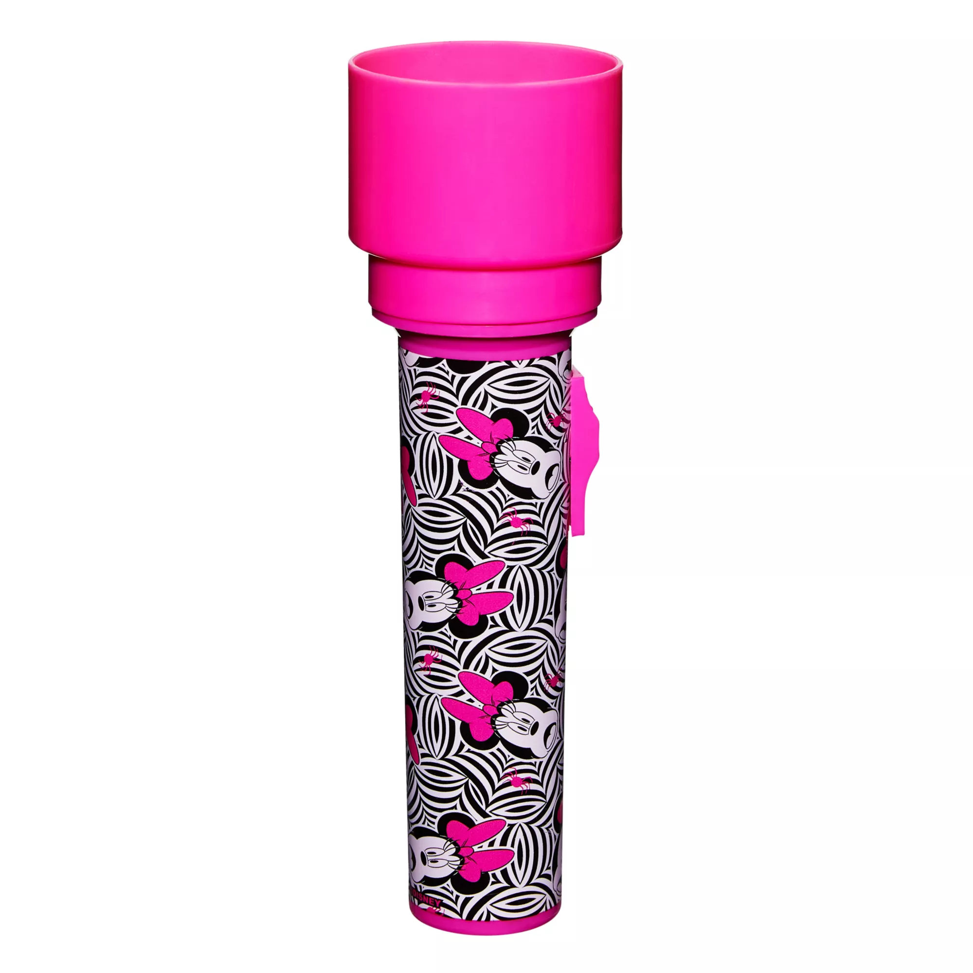 Light up the night with this officially licensed Minnie Mouse handheld projector! Featuring a bright pink design adorned with Minnie Mouse graphics, this projector casts a lively picture on any flat surface.