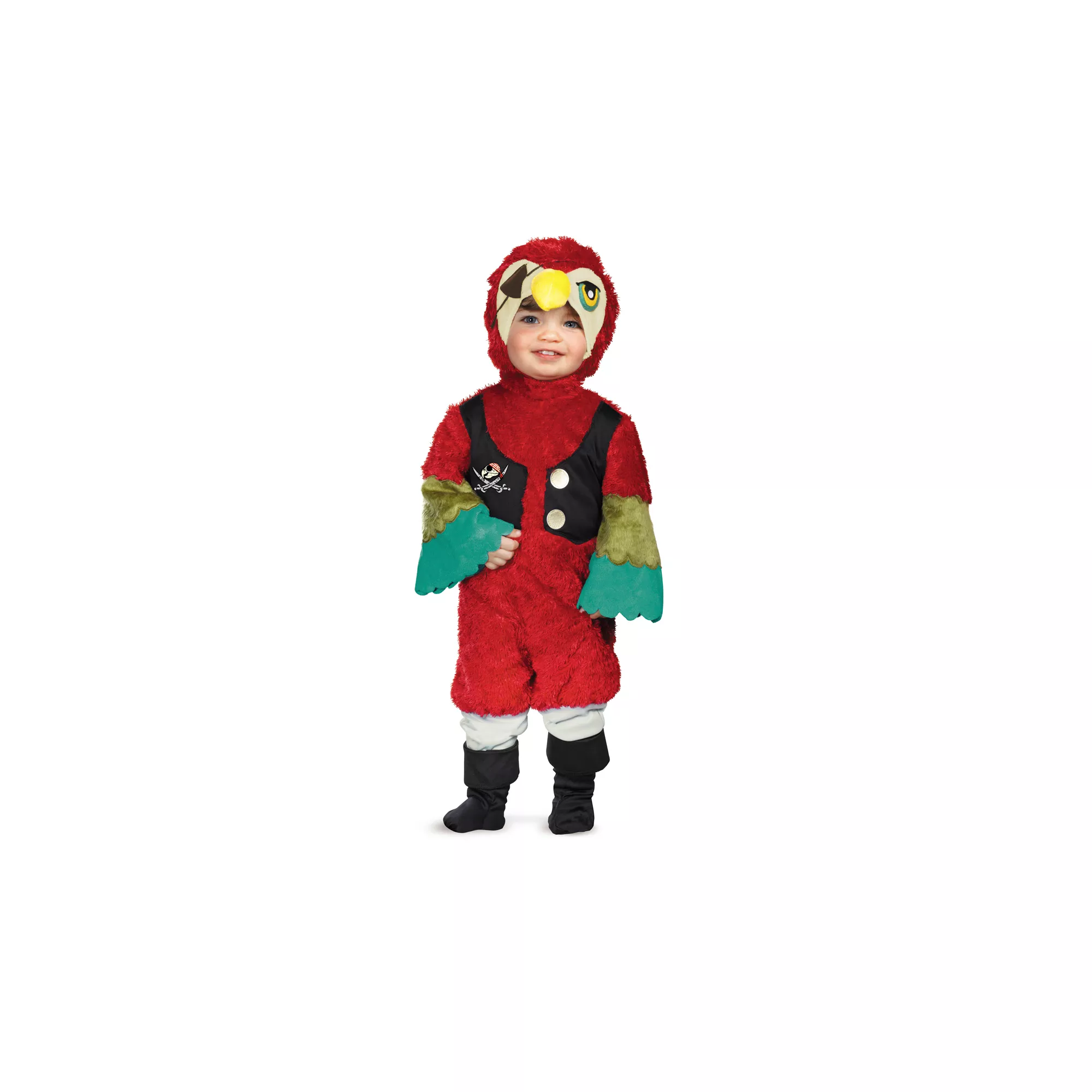 Aaarg matey! While you may not be able to actually perch your little one upon your shoulder this Pirate Parrot is one cute costume. Polly may want a cracker but will get a bounty of Halloween treats. Set sail for a Halloween adventure when you dress your child in this boy's Pirate Parrot toddler costume.