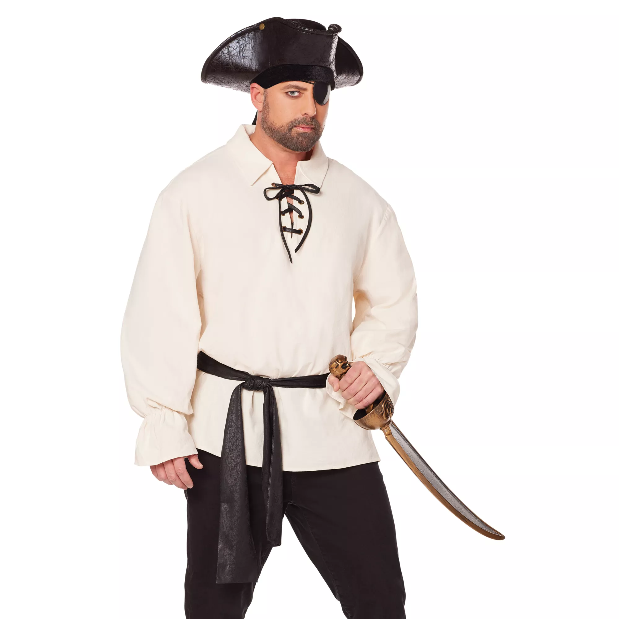 Set sail on your next adventure with this swashbuckling Pirate Shirt and Belt! With its convenient pullover style, this shirt will have you out the door and ready to sail the seven seas in no time. Assemble your crew and get ready to say "AAAAARGH"!