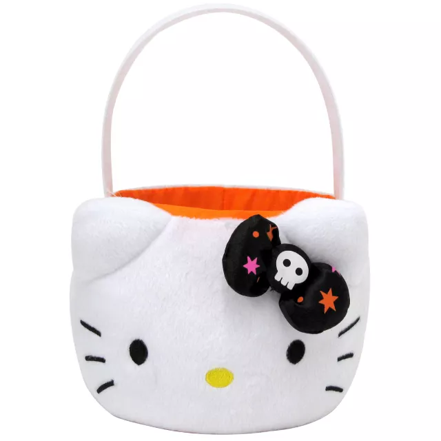 Match your costume (sold separately) with your Halloween bucket using the officially licensed Hello Kitty Plush Bucket! The plush bucket features Hello Kitty's face and 3D black skeleton and star decorated bow!