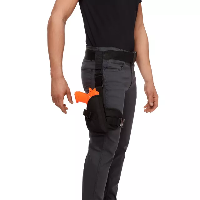 Gear up for some bad guy busting with this street ready belt with leg holster! The belt is tough enough for even the most extreme missions and the attached holster always makes sure that your weapon is in arms reach! It's the perfect accessory for your police costume.