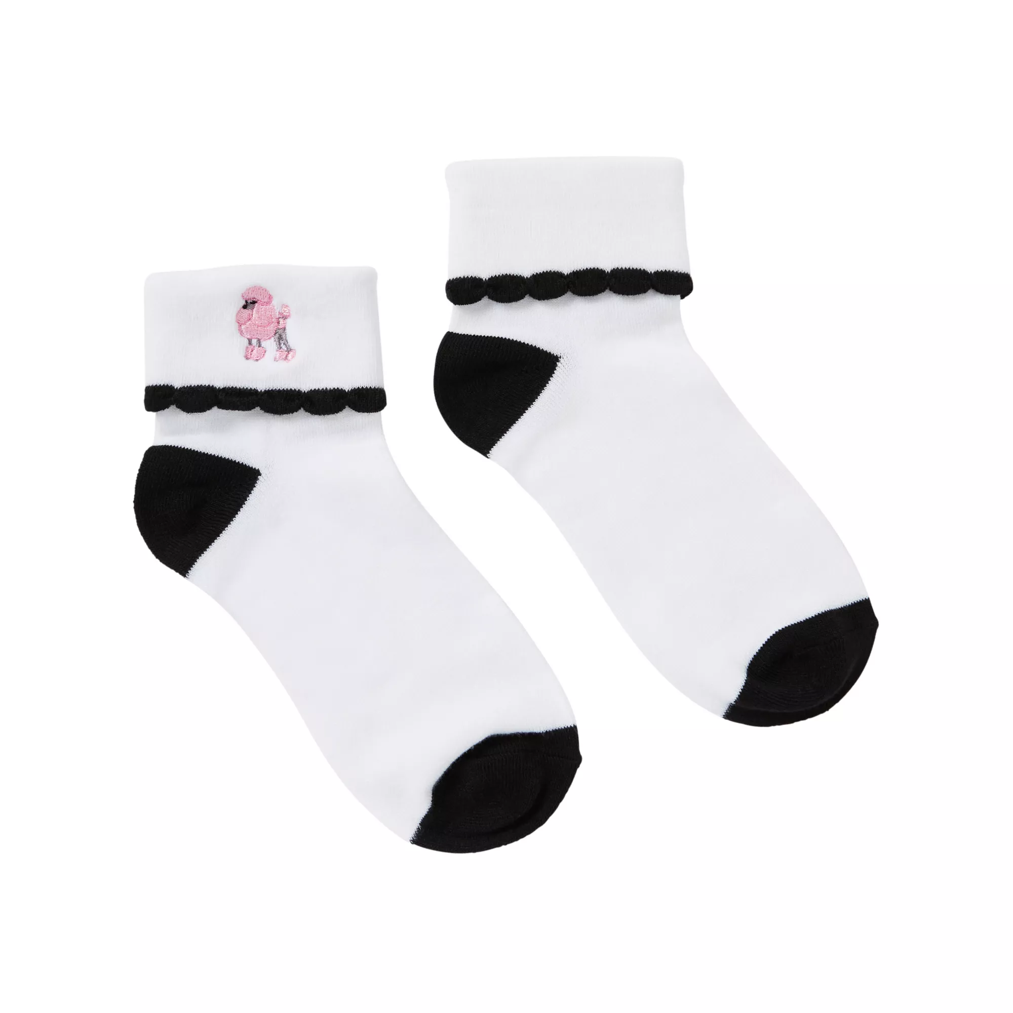 Jive and dive right into America's heart when you wear the snazzy Poodle Sock! These black and white socks featuring an adorable poodle graphic go great with any pair of dancing shoes.