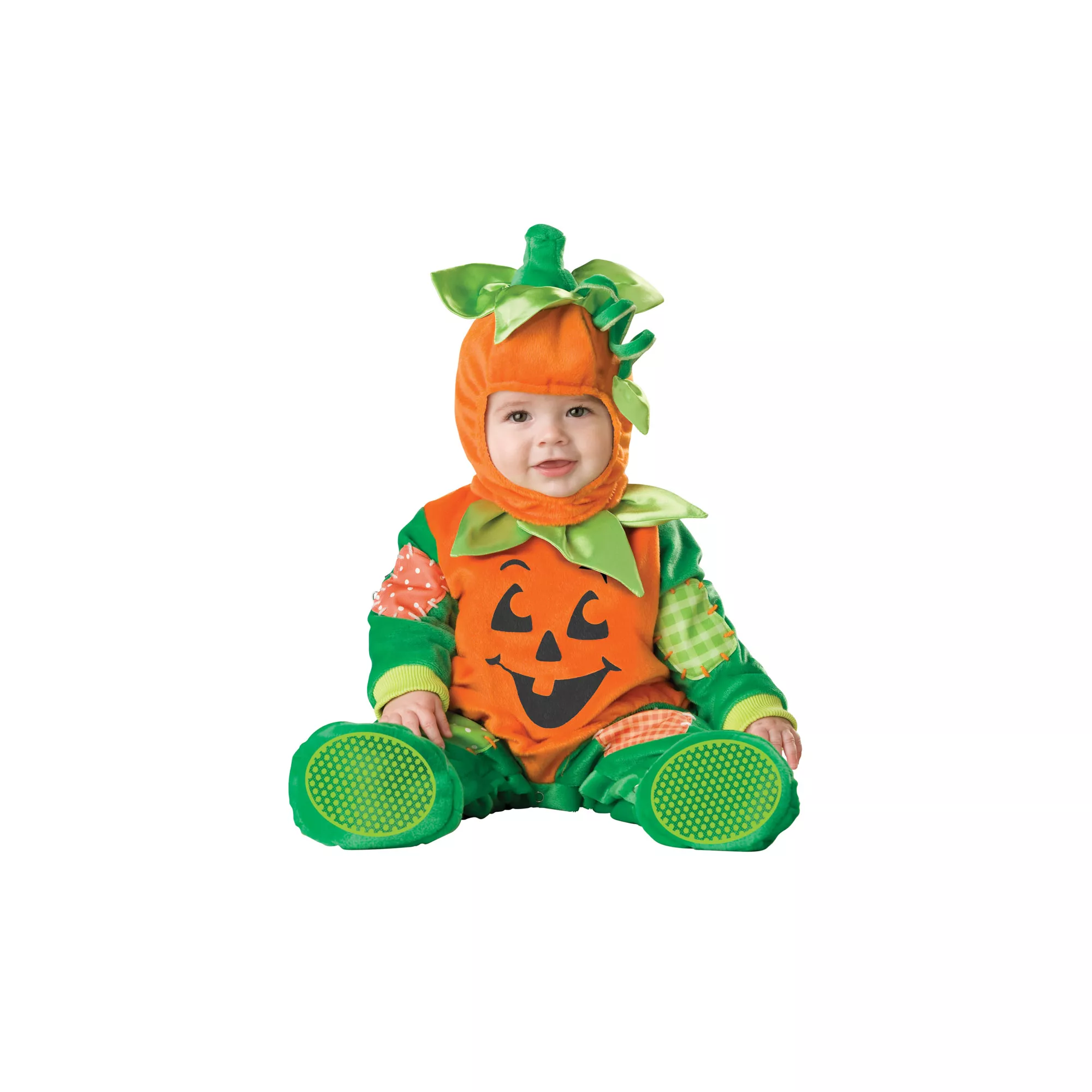 Look what sprouted in the pumpkin patch! Dress your little sprout in this adorable Pumpkin Patch infant costume and make Halloween memories. This little jack-o-lantern will light up the entire room - so cute!