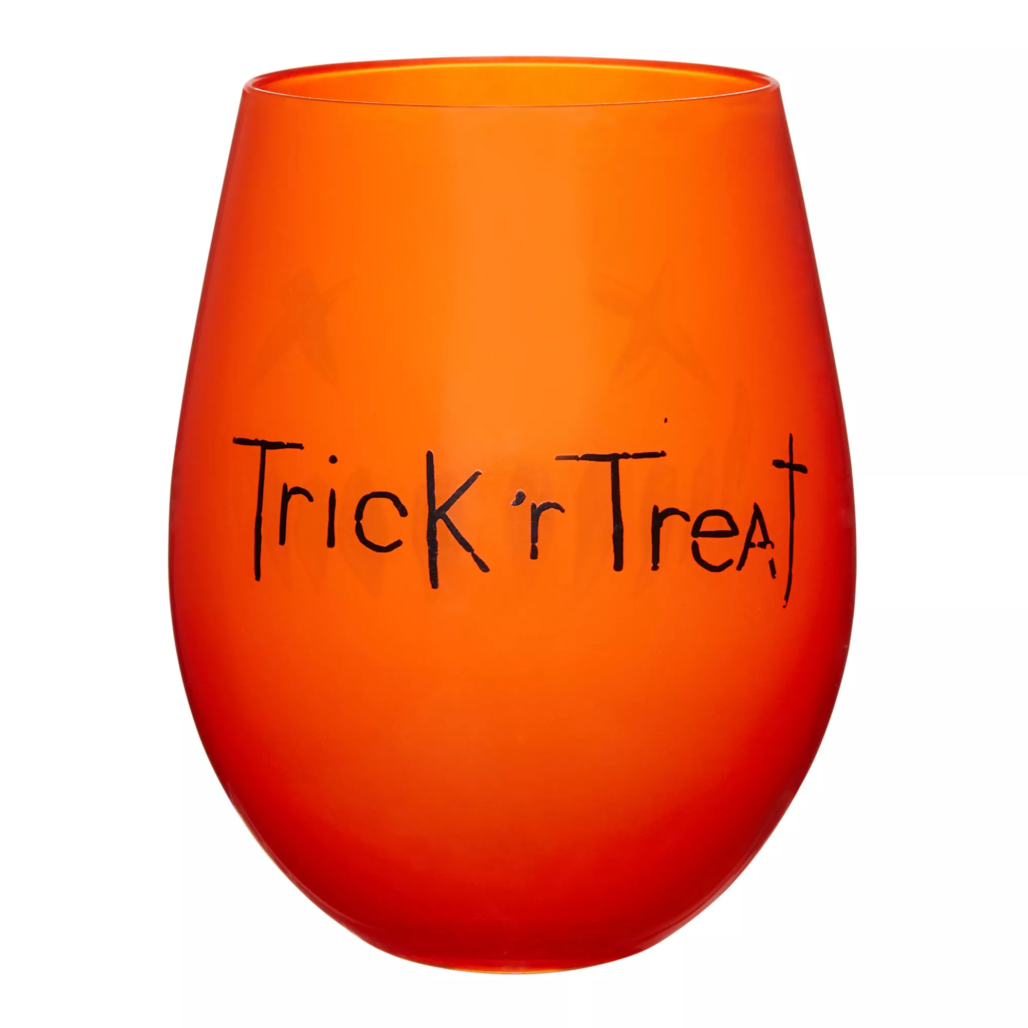 Celebrate your favorite horror movie with every sip from this official Trick 'r Treat Pumpkin Stemless Glass! This fun orange glass is perfect for serving beverages to your guests at Halloween or any time, or enjoy every sip yourself.