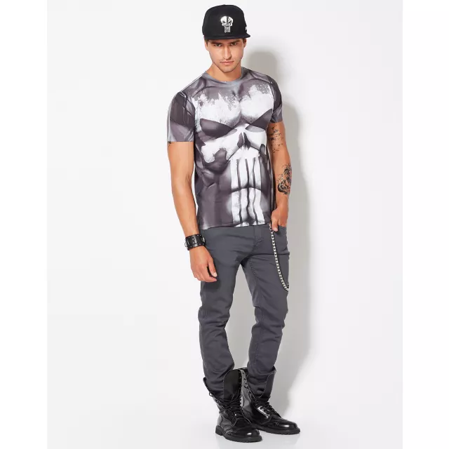 Do what you gotta do to ensure a fun and safe Halloween for all when you decide to dress up in this officially licensed Punisher t shirt. This awesome, black and white superhero tee features character muscle graphics that will make any outfit look super.