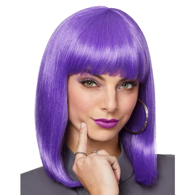 Live large when you create a new persona in this glorious purple pageboy wig. Why be a wallflower when you can stand out in any crowd - get the party started and get ready to dance all night because in this fabulous wig you will never be without.