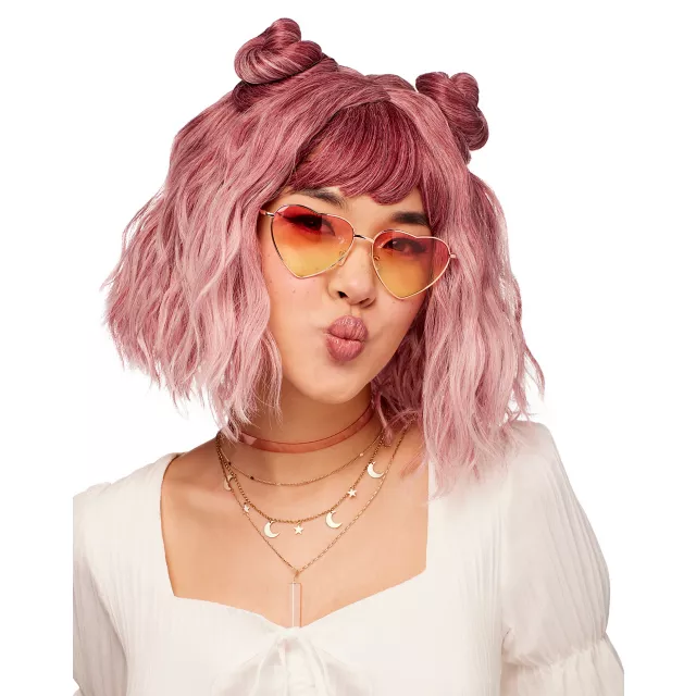 Rock a hairdo that's out of this world with this Purple Wavy Buns and Bangs Wig! This reddish-purple ombre wig adds a fun pop of color to any Halloween ensemble.