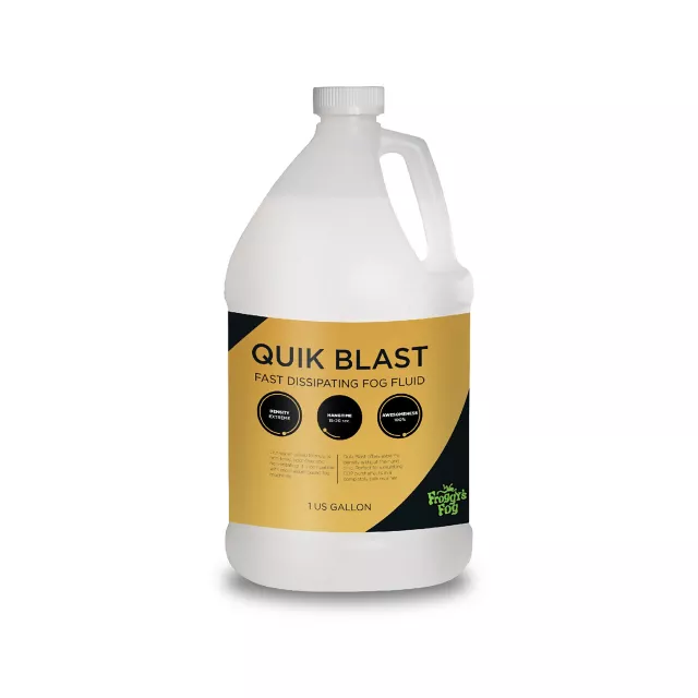 Use Quik Blast Fast-Dissipating Fog Juice to create an incredible blast effect! This extremely dense fog fluid is perfect for creating quick smoke effects, fake geyser blasts, upshot effects, and more. This fluid creates a super-thick cloud of smoke that dissipates as quickly as it appears. Add Quik Blast fog to your Halloween scene to mimic steam escaping pipes, CO2 canister blasts, and more. Froggy's Fog is the premier fog fluid manufacturer based in the United States of America. All of our Fog and Haze Fluids are 100% Made in the U.S.A. from lab-grade UV-Filtered de-ionized water and pharmaceutical grade chemicals, each approved by the FDA.