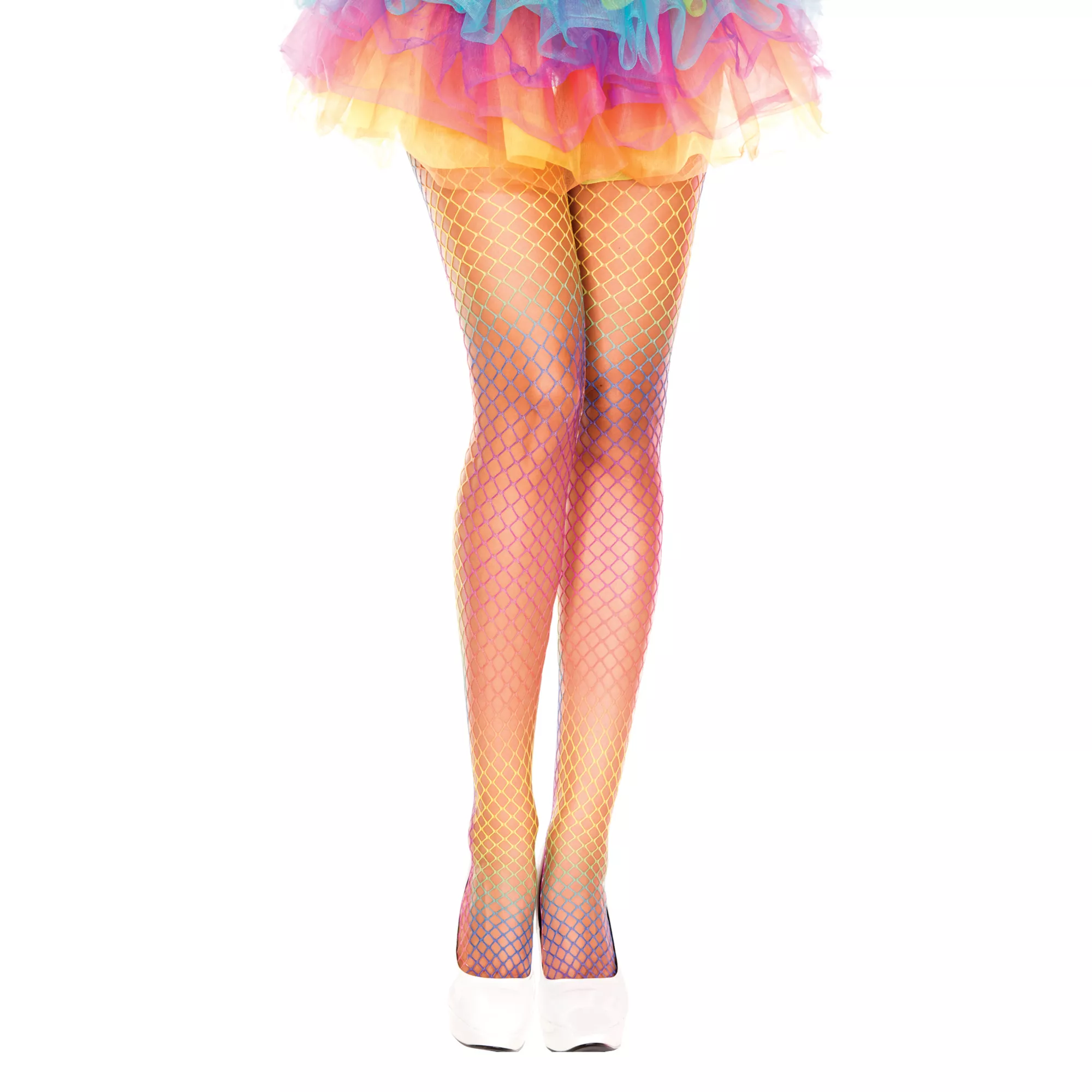 Add a splash of color to your outfit or costume with these fun rainbow fishnet pantyhose!