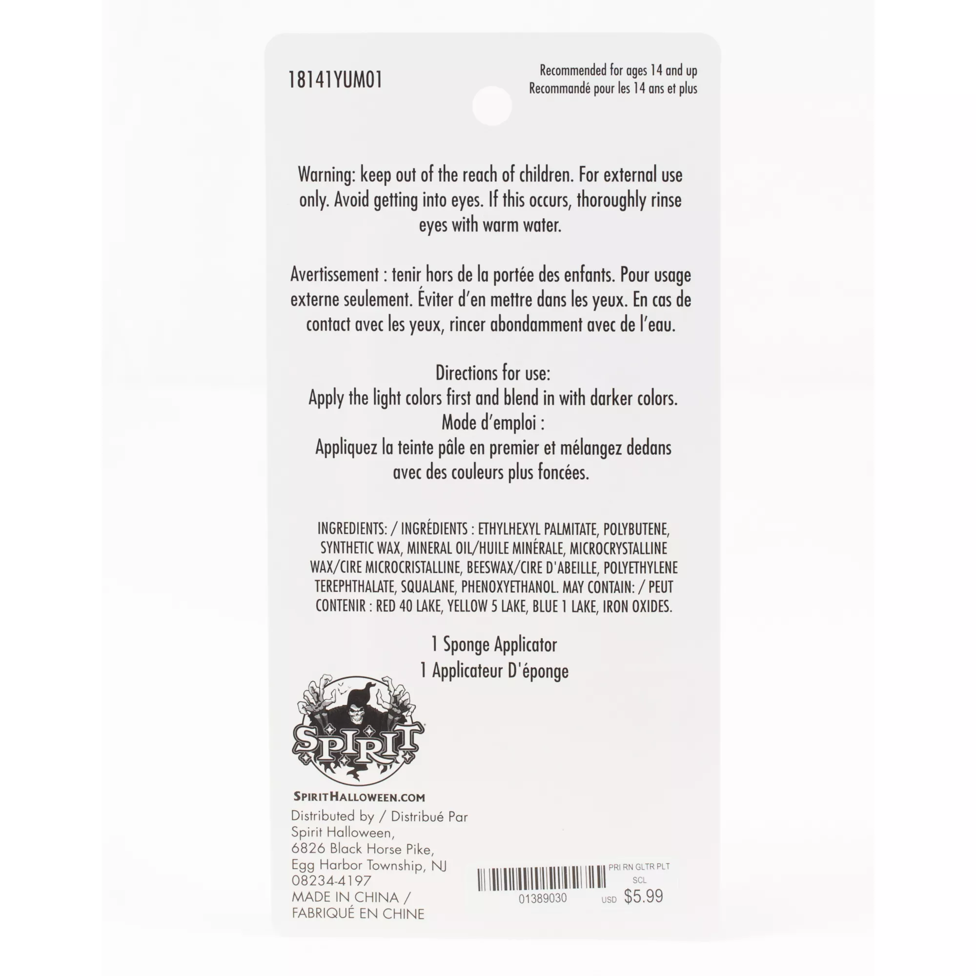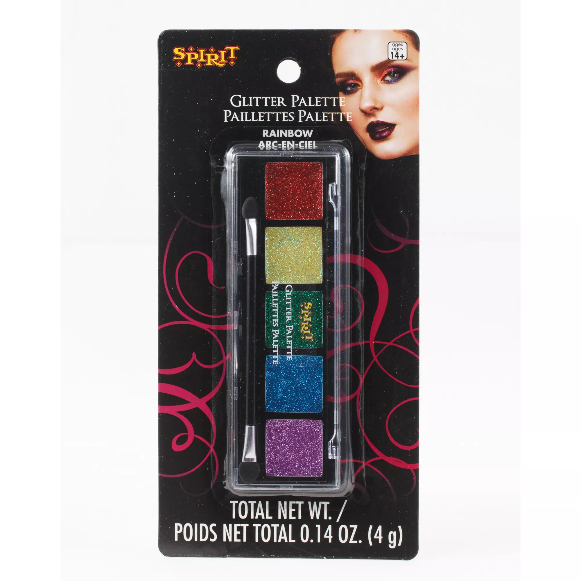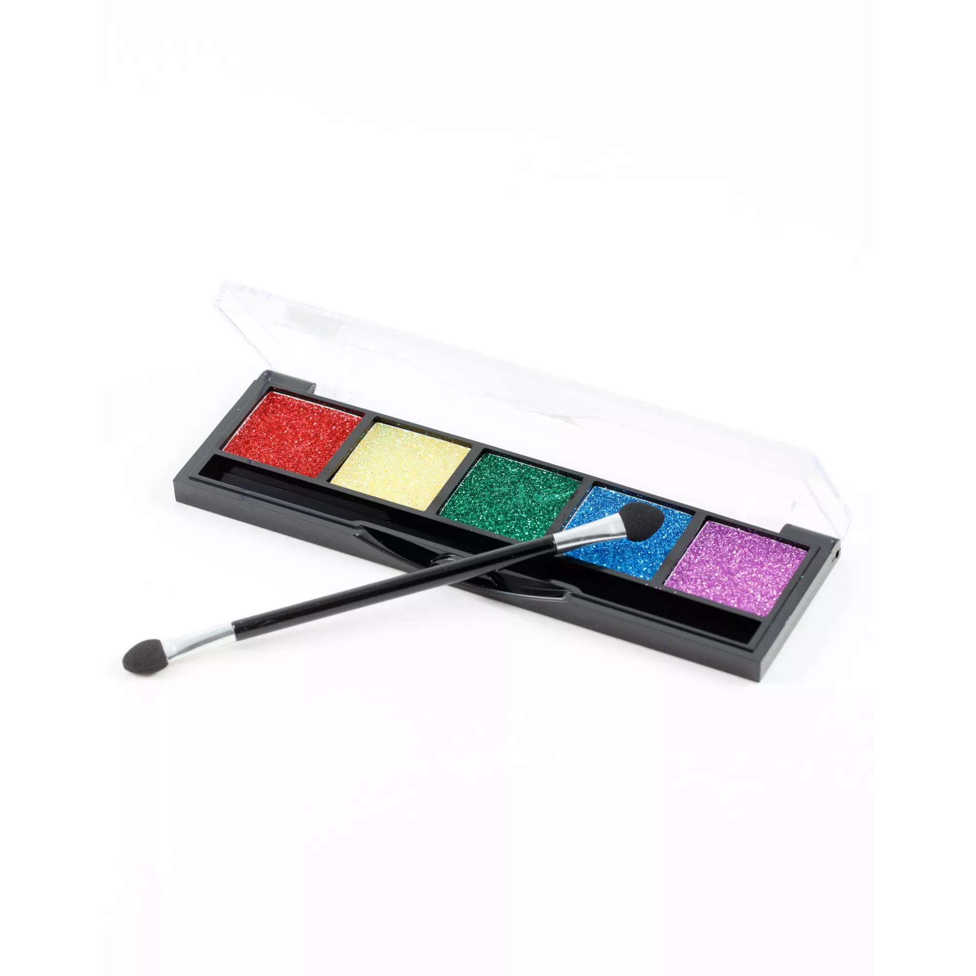 Embrace the colors of the rainbow when you use this rainbow glitter palette. This rainbow palette comes with red, yellow, green, blue, and purple, so you can apply it to any costume needing some extra sparkle.