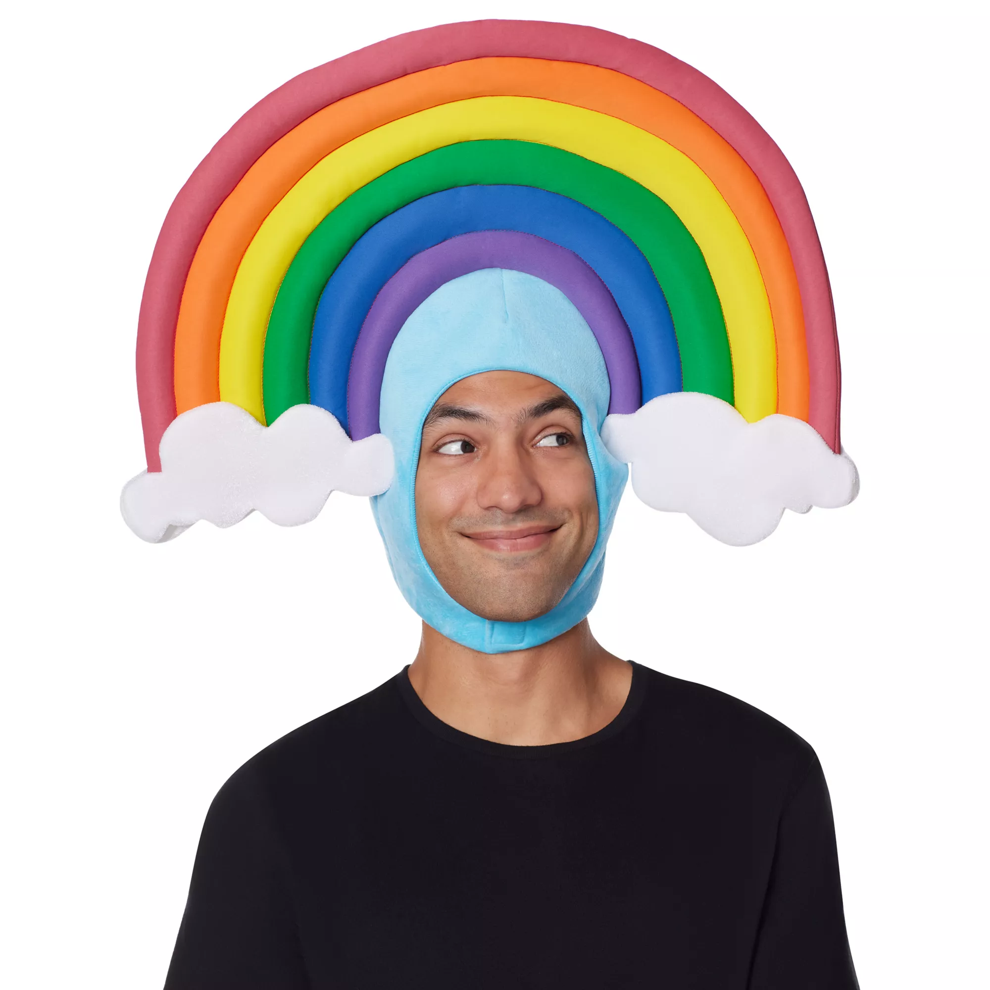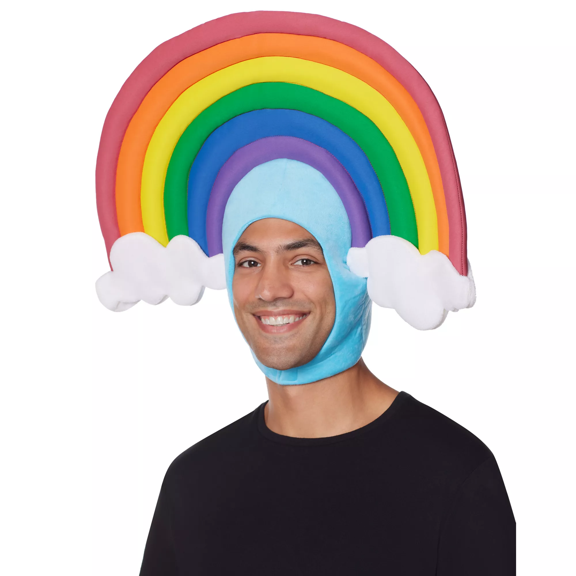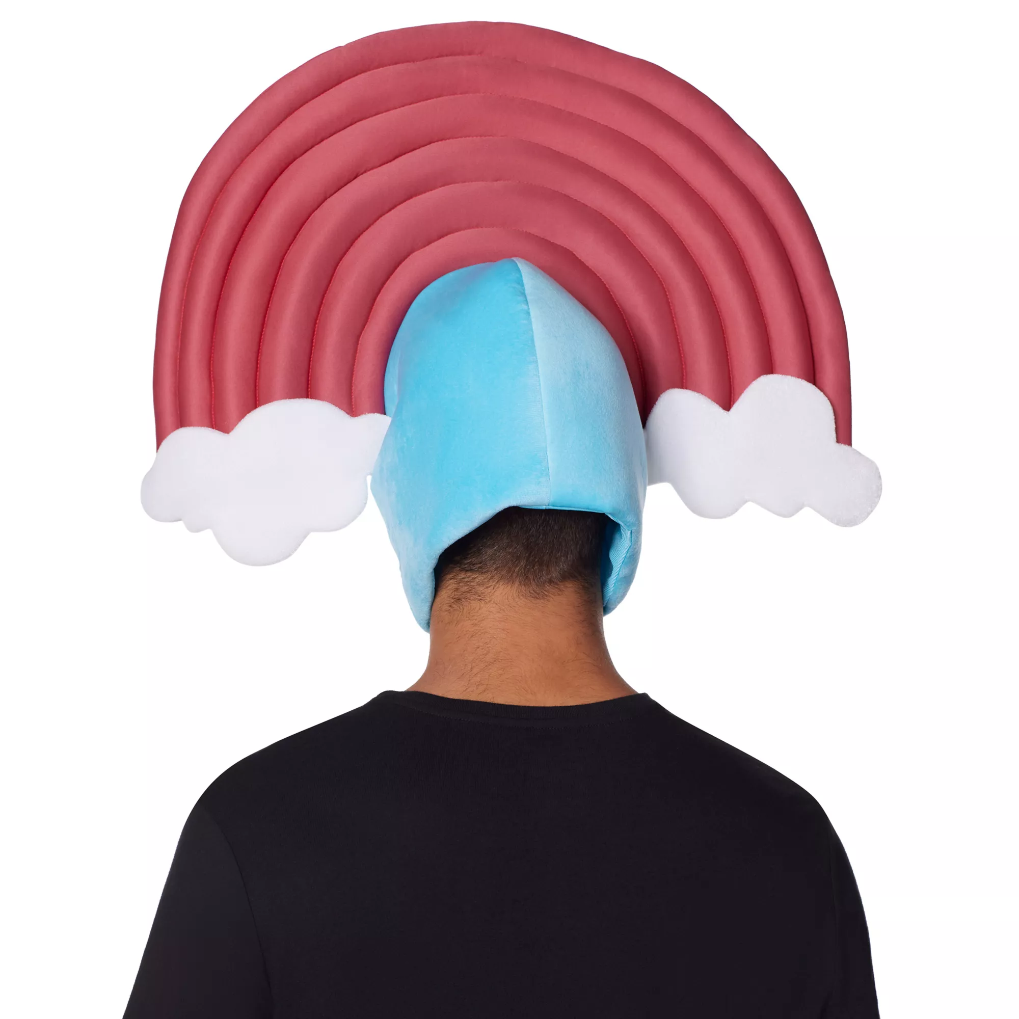 You'll be somewhere under the rainbow when you wear this plush rainbow hat! A soft-to-the-touch rainbow with two puffy white clouds hugs your head, turning you into a human pot of gold.