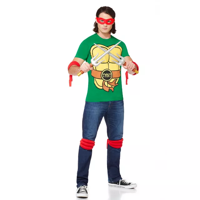 Get ready to complete your ninja fighting outfit with this officially licensed TMNT Raphael Kit! The kit includes a red eye mask and matching elbow and knee pads so you will be ready for battle. Whether you are hanging in the sewer eating pizza or in the middle of a fight along with your brothers, you will definitely look like the ultimate hero with this kit!