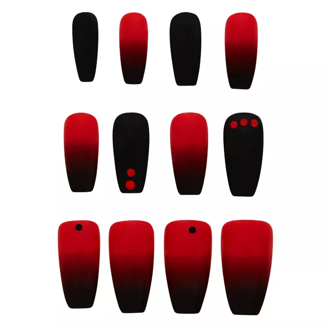 Add a touch of dark glamour to your Halloween look with these red and black press-on nails. With red and black gem studs on some of them, others a mix of the two colors and some all black nails, they let you mix and match to create the perfect addition to your costume.