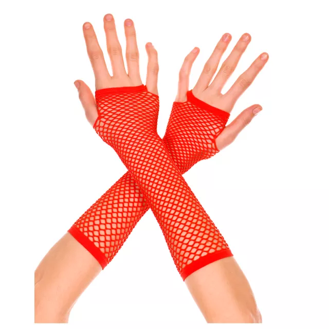 Add some sizzle to your costume with these red hot red diamond net fingerless gloves and shake things up.