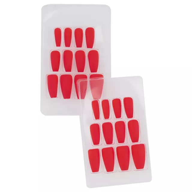 Give yourself just the right finishing touch with these red matte coffin press on nails! They're perfect to go with any devil or other spooky costume.
