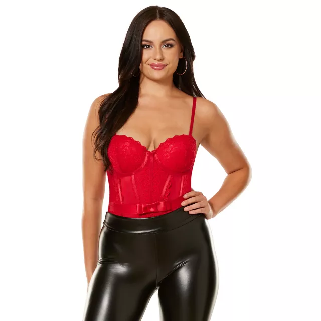 Create your own costume with this beautiful base. This adorable bodysuit features pleather details, sexy sheer sections, and lace additions that will have everyone staring in awe.