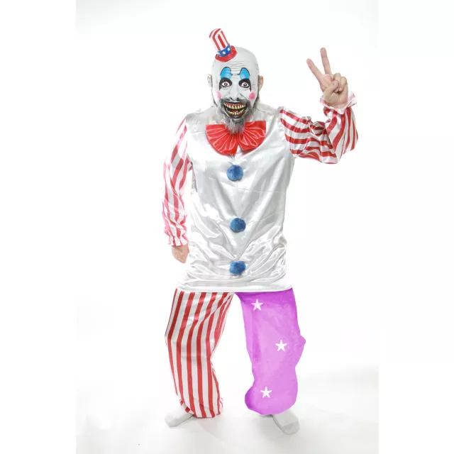 Celebrate Rob Zombie's homicidal clown and owner of a gas station/tourist attraction with a serial killer/freak show/horror theme when you suit up in this officially licensed Captain Spaulding adult costume. He