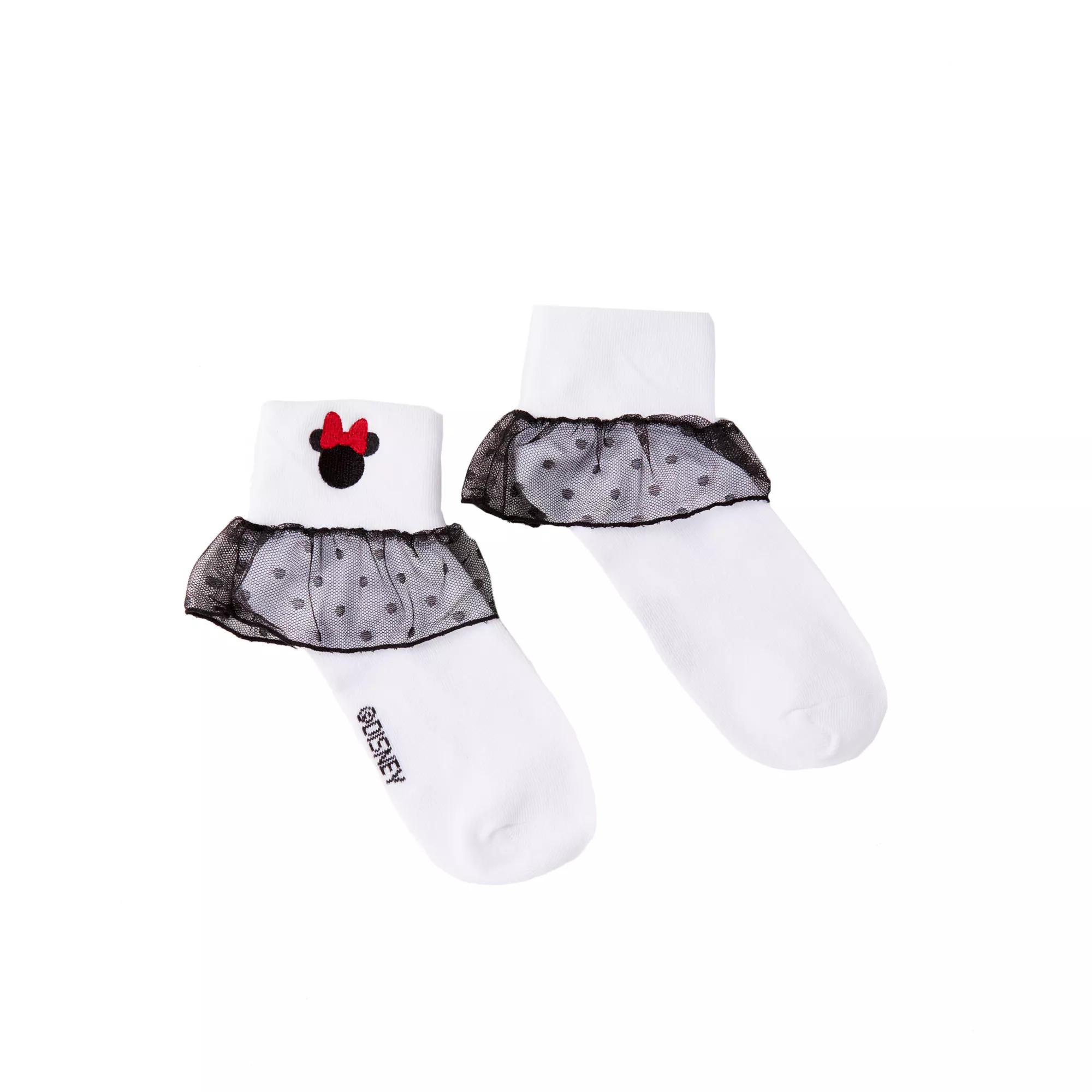 Step into style when you slip your feet in this officially licensed Minnie Mouse socks! The embroidered Minnie will give you a look that is all your own. Ruffle detail adds a cute touch.