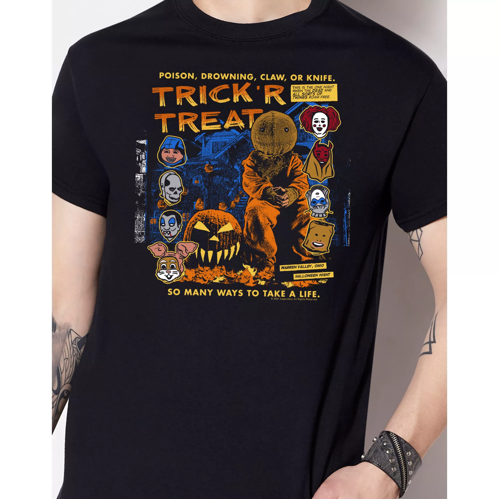 Everyone will know what you’re binging when you show off your taste in horror movies with this officially licensed Sam and Friends Trick 'r Treat T Shirt. Suit up in this stylish tee and you’ll always be showing your fandom.