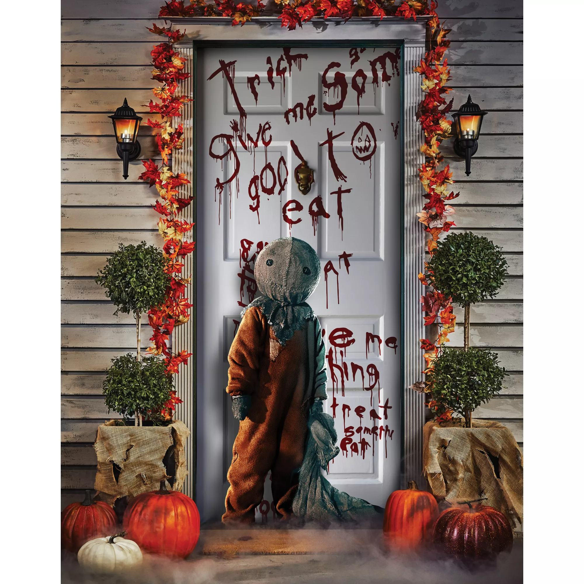 Your guests will be greeted by Sam himself when you display this officially licensed Trick ‘r Treat hanging on your door. This creepy door hanging creates the illusion of a playful message written in blood. You’d better hurry up with Sam’s treat!