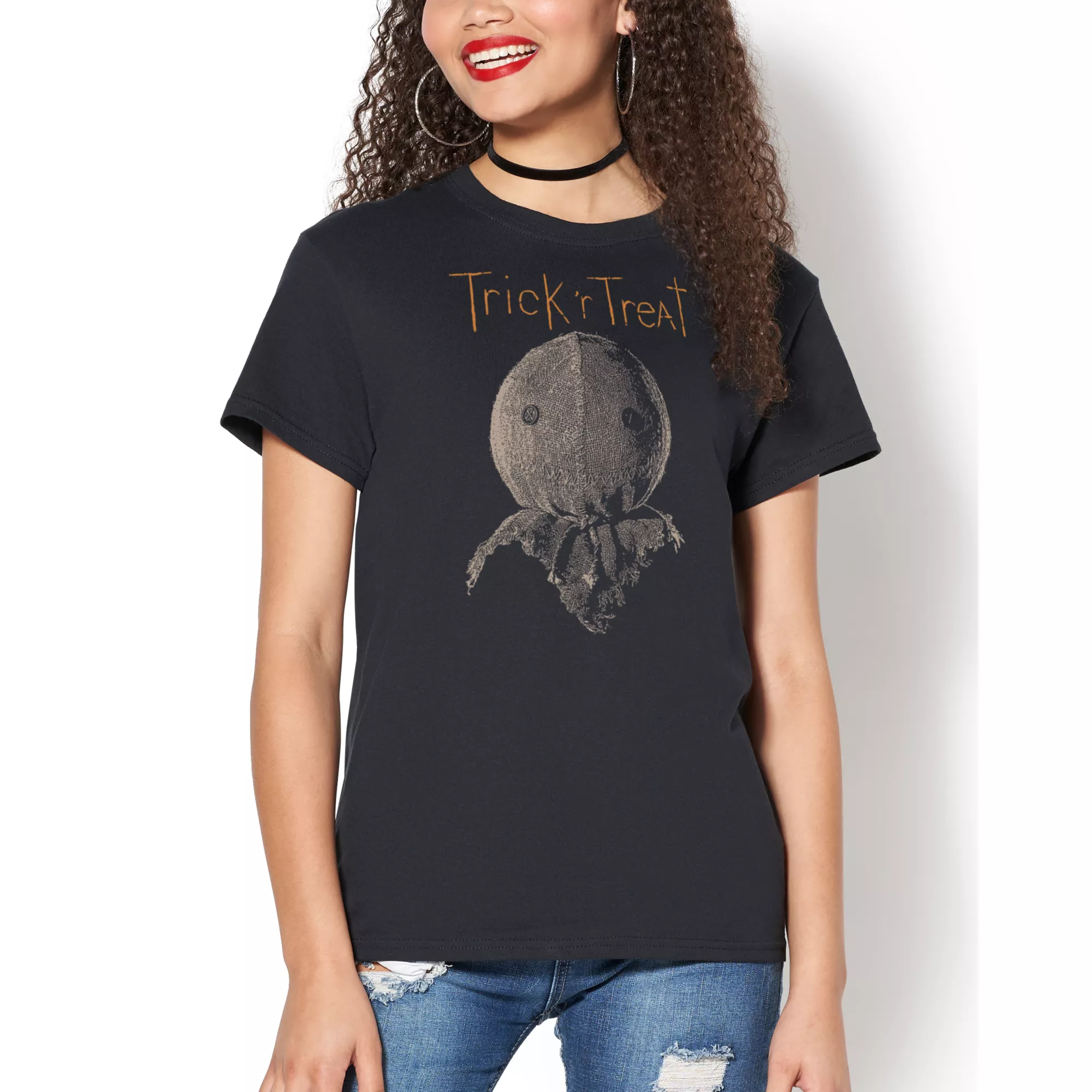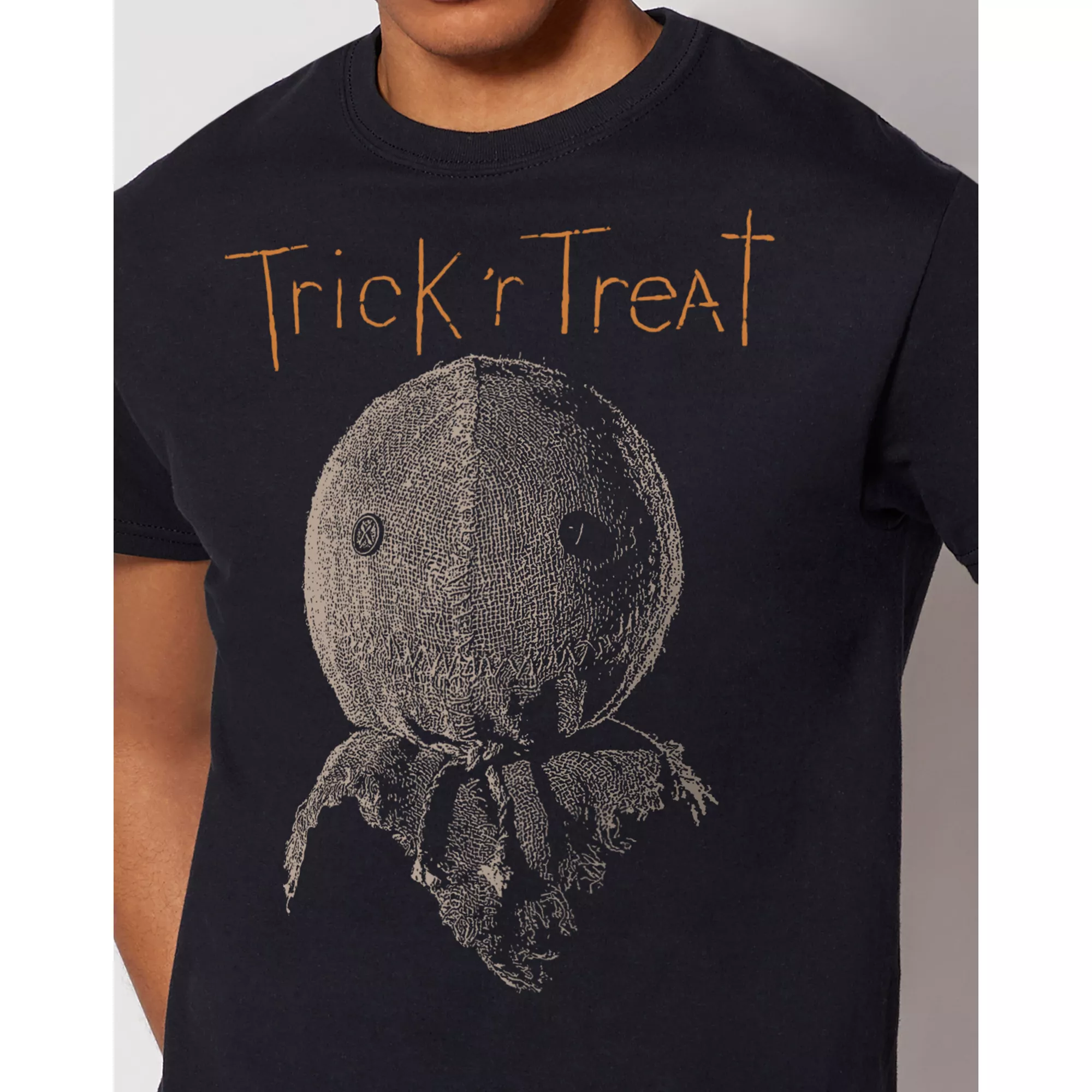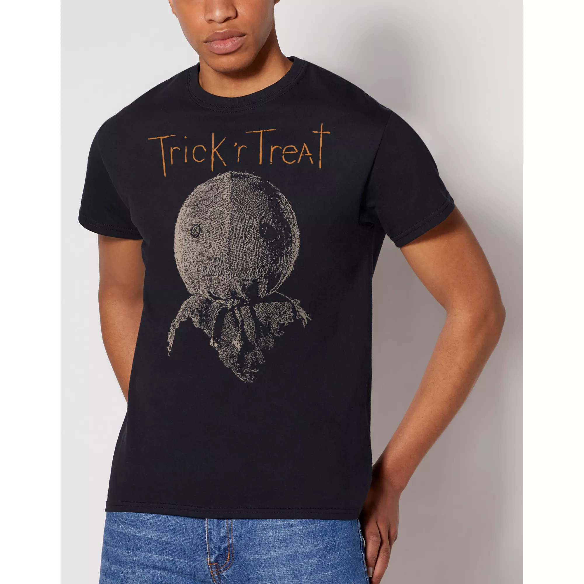 Sam's watching. Are you following the rules? Wear this creepy but cozy Sam Face Logo T Shirt to remind everyone of the sinister trick-or-treater who's always ready to enforce the rules of Halloween!