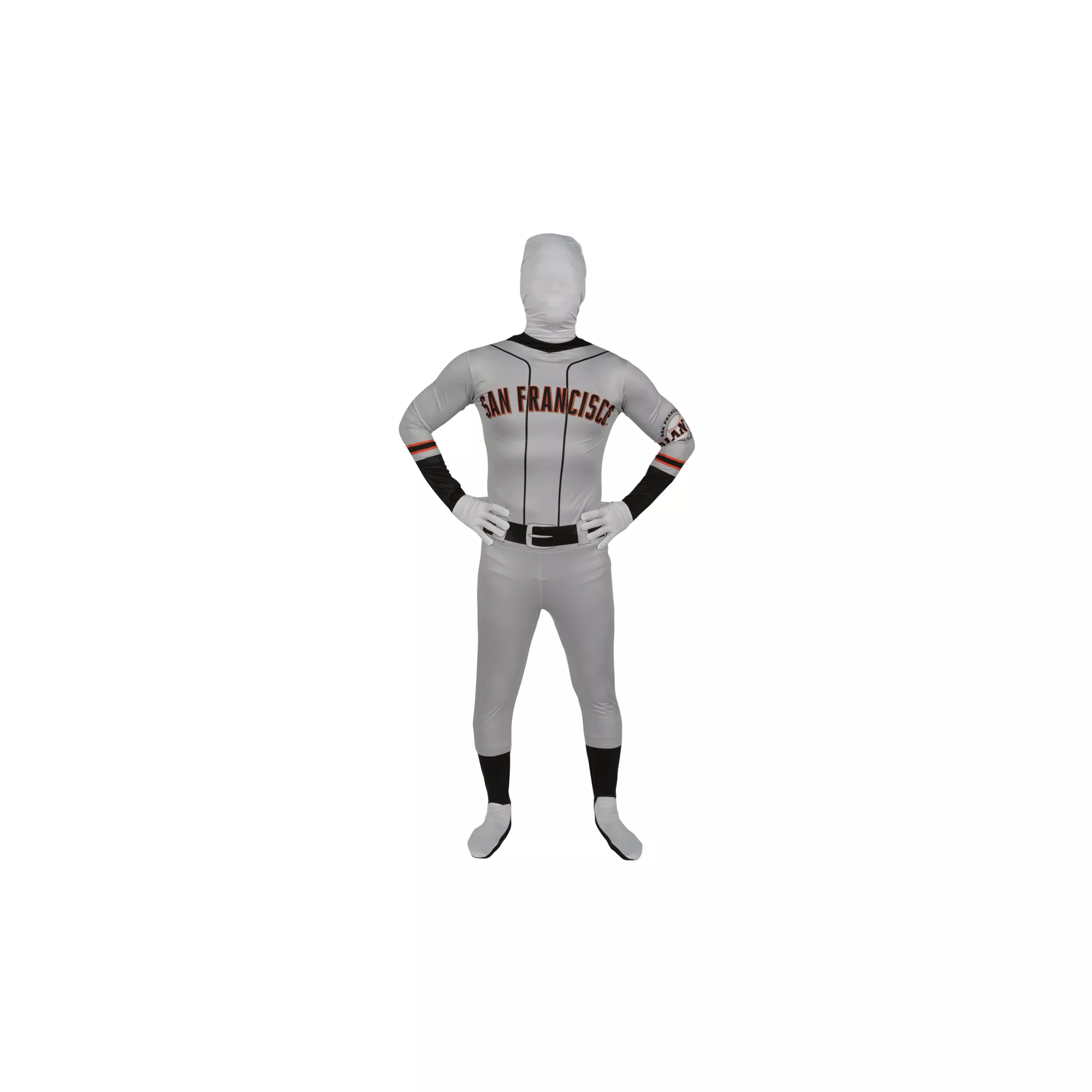 Hit it out of the park on Halloween when you play ball, party at the game or prowl the town on Halloween in this officially licensed and totally authentic looking adult's San Francisco Giants superskin costume. The costume completely conceals your identity yet you can both see and breath though it with ease.
