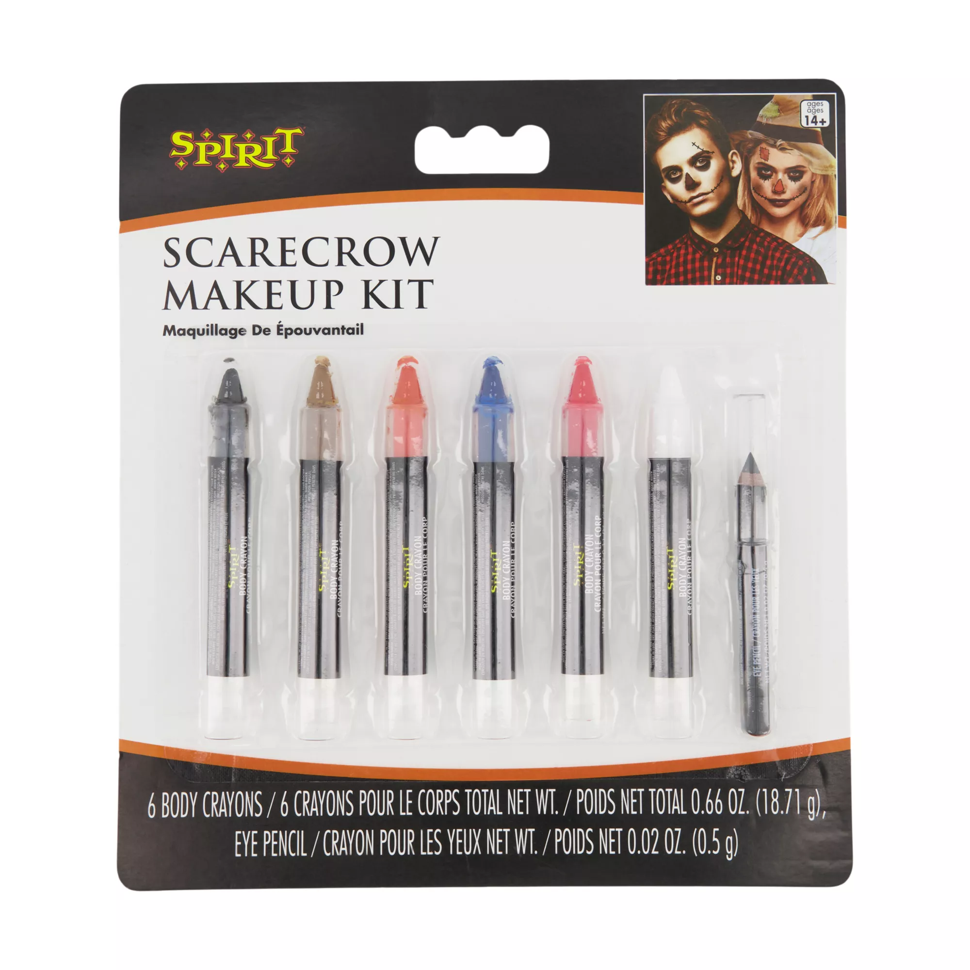 Turn yourself into the ultimate scarecrow with this colorful makeup kit! Create a unique look every single time.
