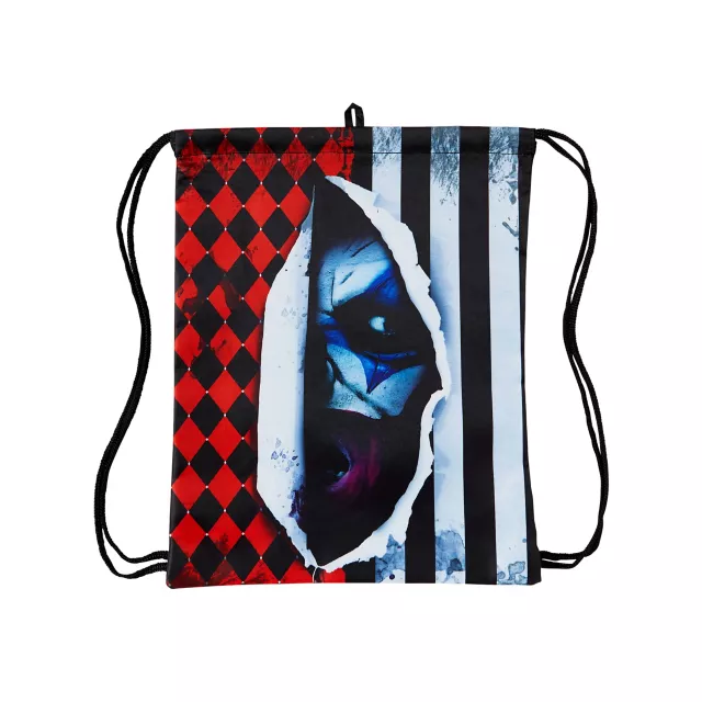 Carry your Halloween essentials in style when you get your hands on this Scary Clown Cinch Bag. This bag is great for carrying lots of candy or for anytime you're on the go and want to accessorize with something spooky.