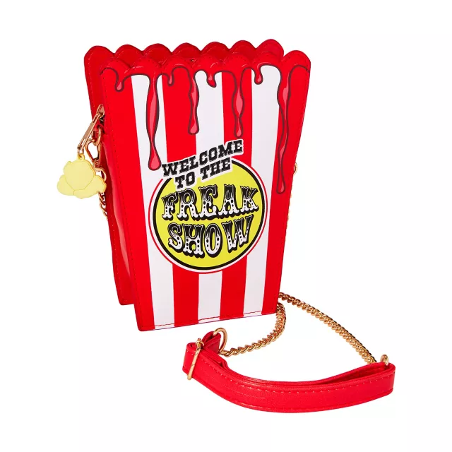 Welcome to the freak show! Just don't stay too long! This big-top Scary Clown Popcorn Crossbody Bag features a 3D design of a bloody popcorn bucket, with a popcorn charm zipper pull and a fully functional zipper pocket! We're not clownin' around.