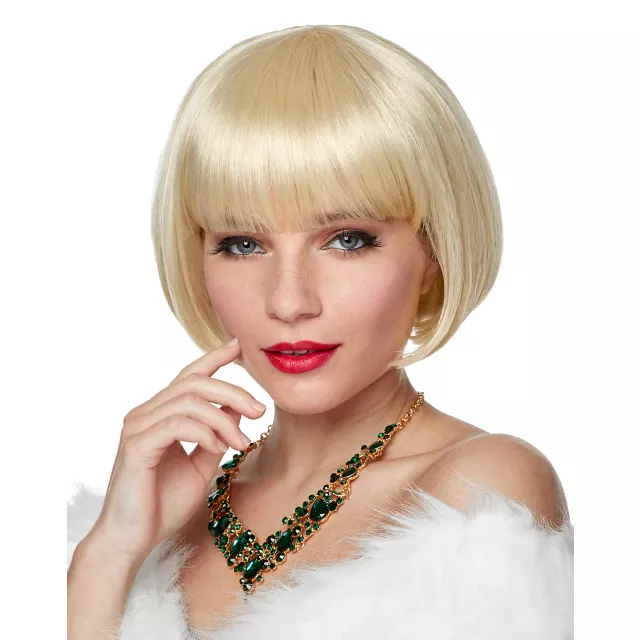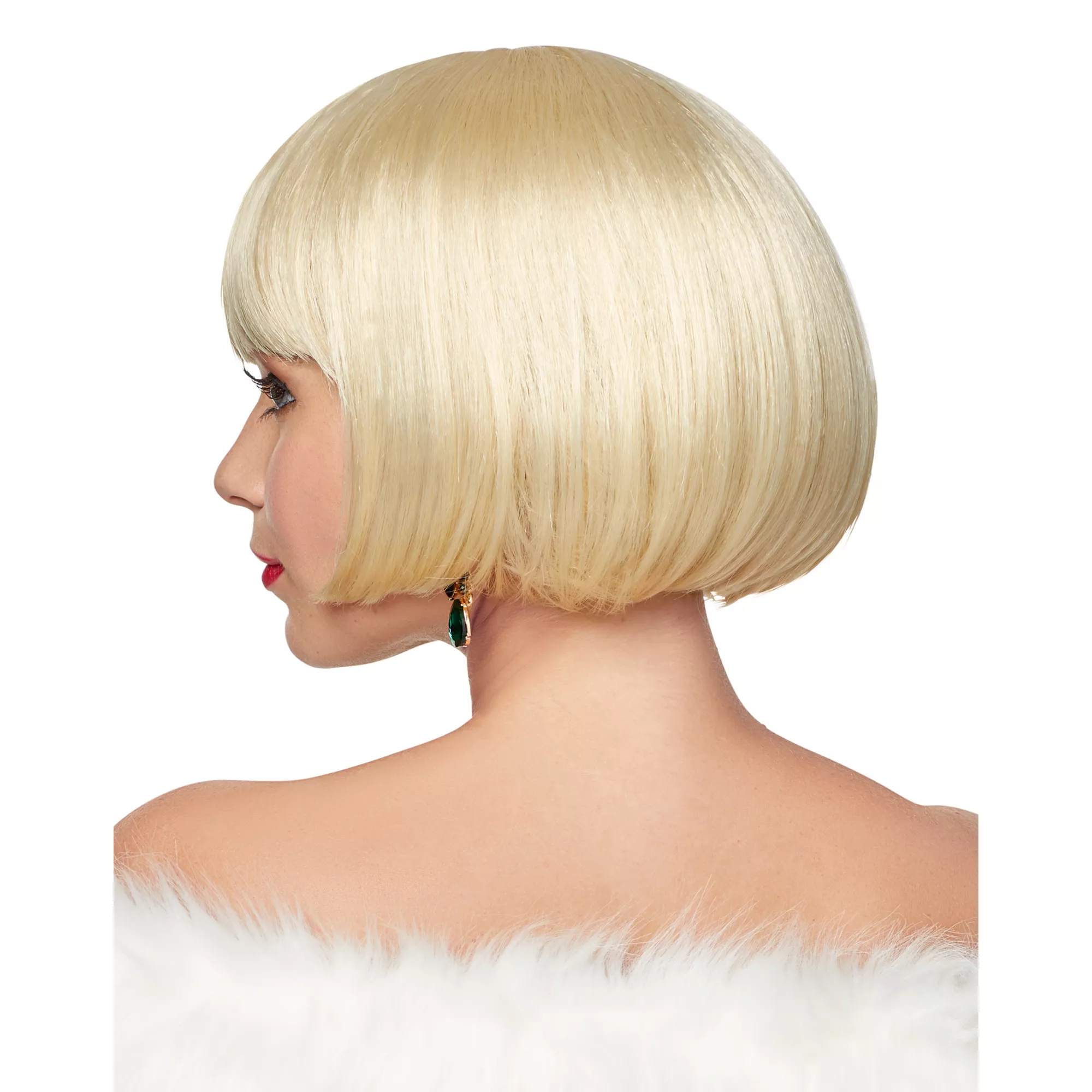 You’re a “dead” ringer for a Hitchcock girl in this Short Blonde Bob Wig. Recapture the glamour of days gone by in this Polypropylene Halloween wig, which is 11 inches long and Blonde. For the slightly brainy bombshell look, add 50's Rhinestone Glasses, available separately.