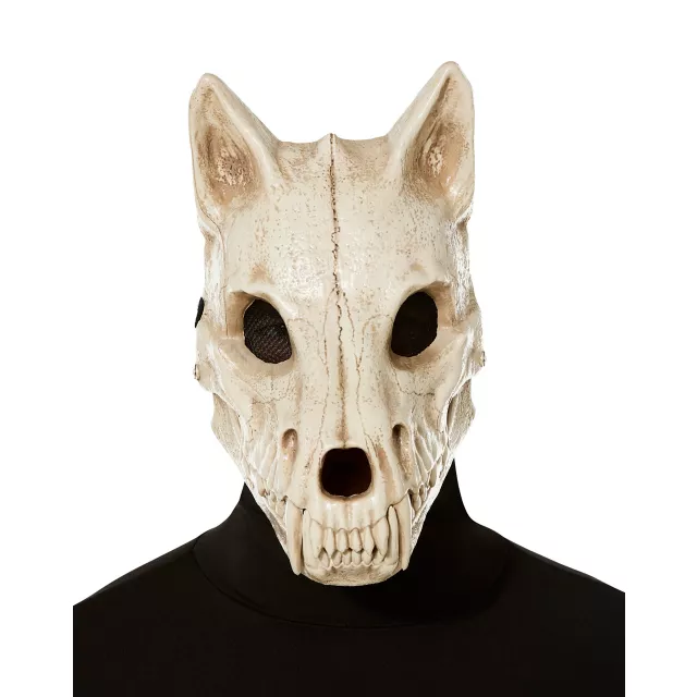 Avoid the full moon this Halloween while wearing this Skeletal Wolf Half Mask or you might just go rabid! This awesome skeletal wolf mask features a hinge in the jaw so the mouth actually opens and closes when you speak and is perfect for spooking your friends.