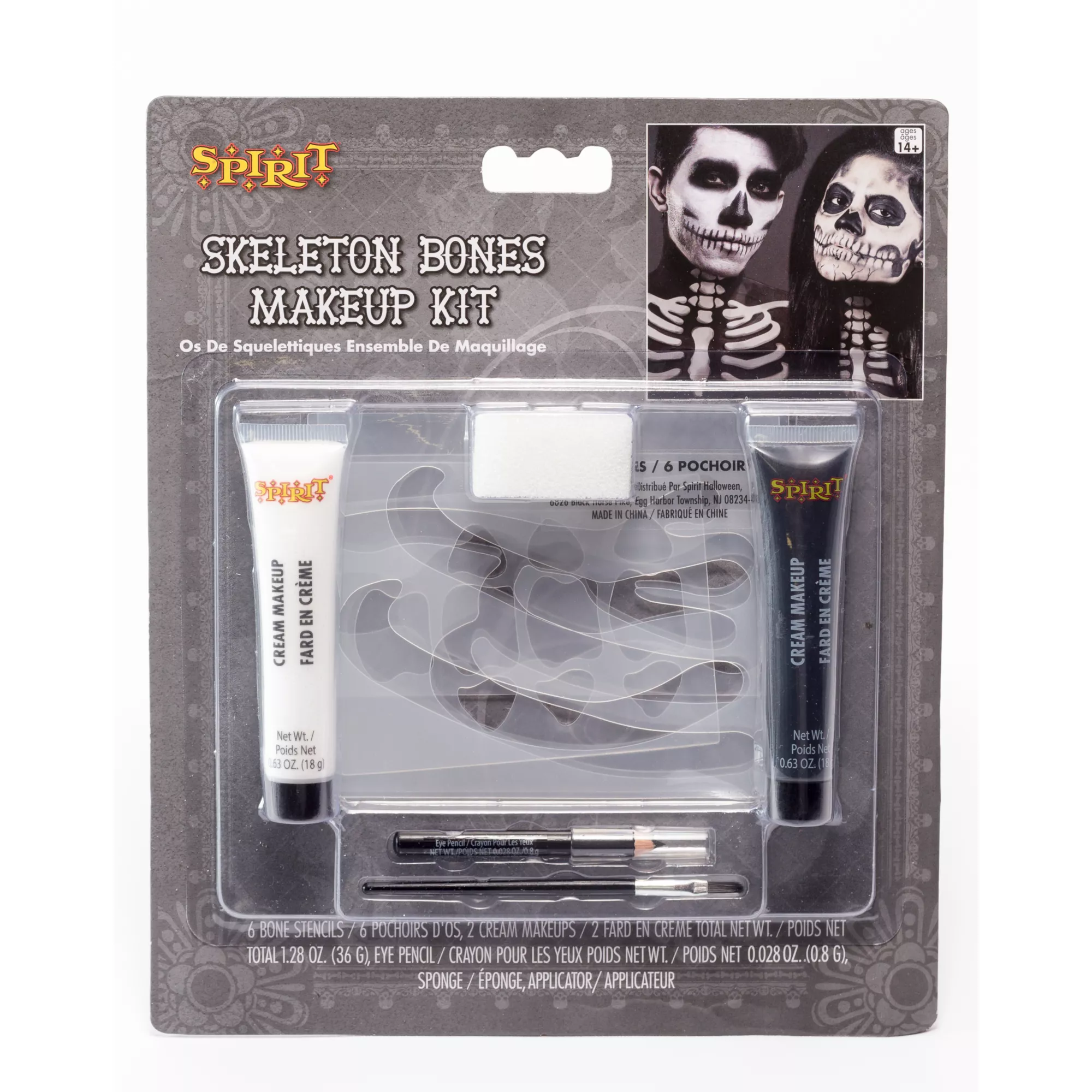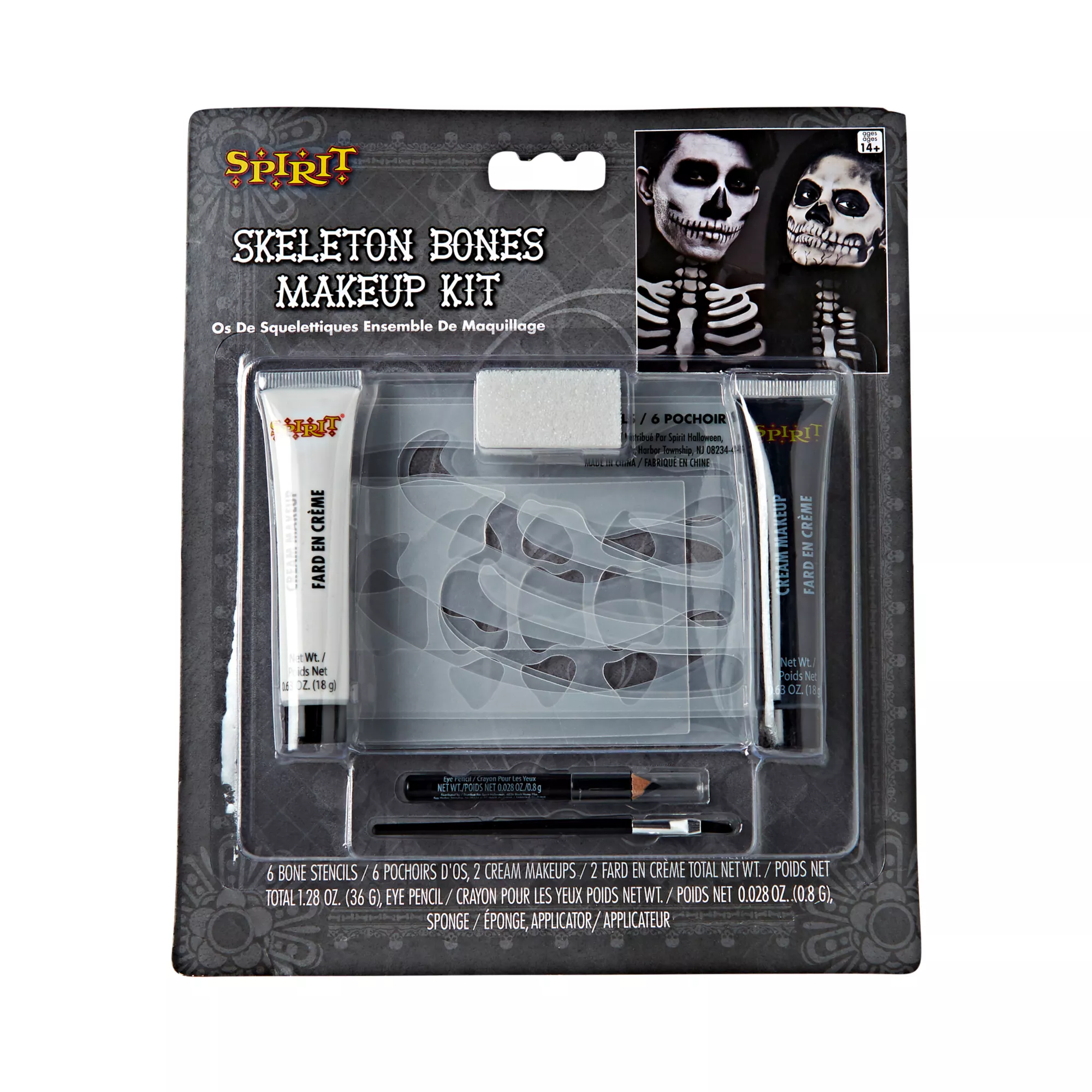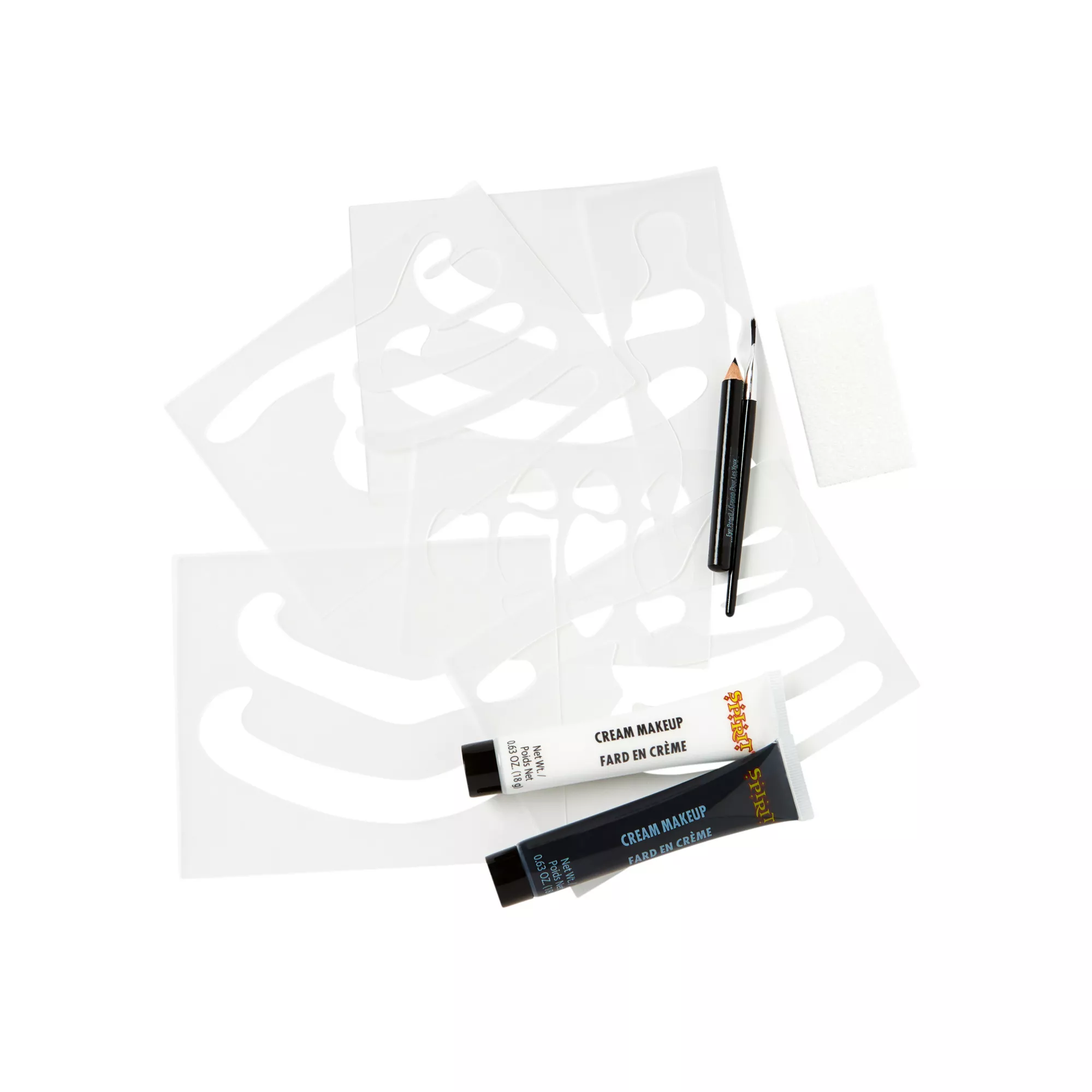 Complete your skeleton costume (sold separately) with the Skeleton Makeup Kit. This is the only kit to use as you customize your skeleton style! It features thick creams, a brush for precision, and plastic stencils to guide you in creating flawless skeleton looks.
