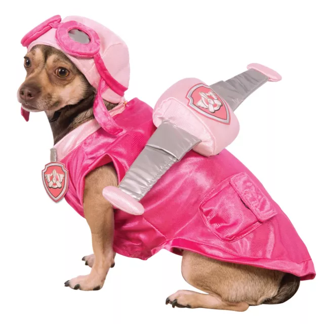Let Bow Wow fly up in the sky with this Skye Dog Costume - Paw Patrol! Features pink pilot jacket with logo and pocket, pink pup pack with attached plane wings, and pilot hat with attached silver fabric goggles. Your dog will definitely be the cutest pilot on the block!