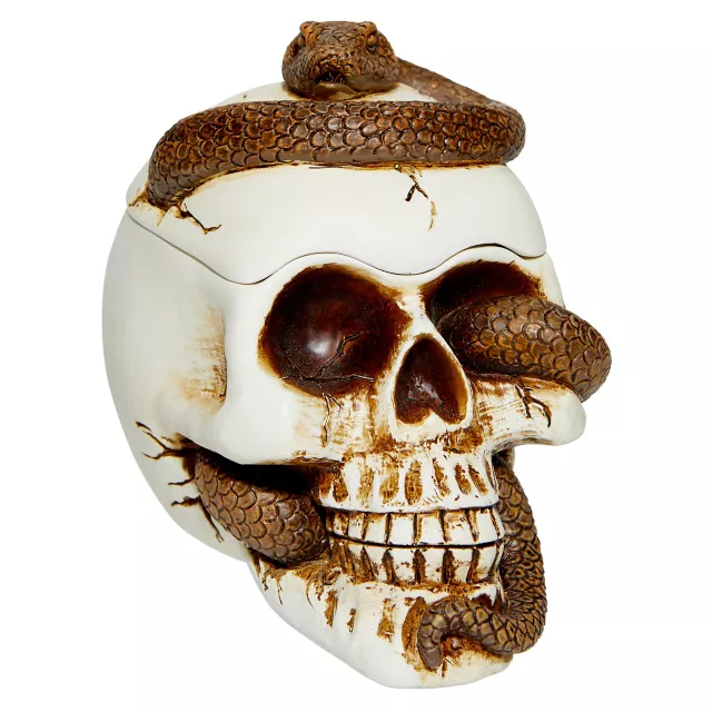 You'll always have a secure place to store your Halloween trinkets and knick-knacks with this Snake Skull Box in your possession. This cool skull features a snake crawling all over and inside of the eye of the skull and makes for a useful piece of decor to have in your home.