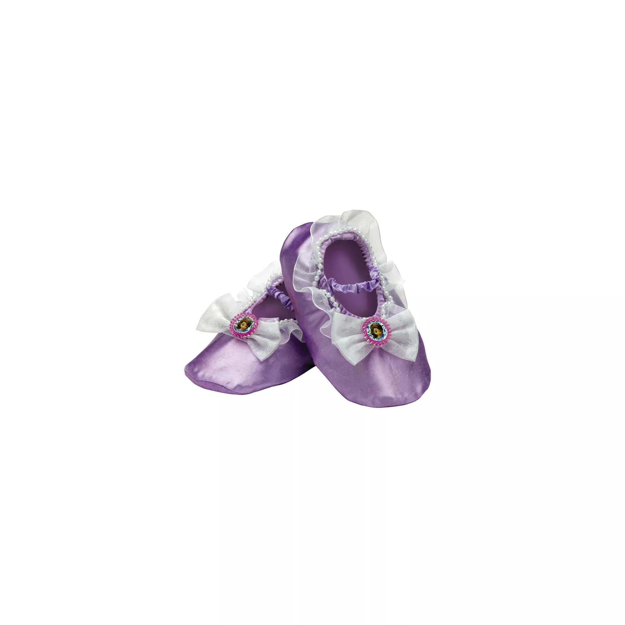 Complete your little darling's Sofia costume when you get her the officially licensed Disney Sofia the First Child Slippers. These cute slippers features an elastic band to keep them secure on the foot along with a tiny Sofia cameo detail.