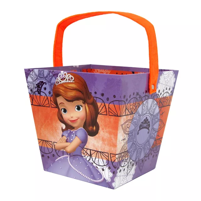 Walk with the Princess on Halloween night with the officially licensed Sofia Treat Bucket! Features Princess Sofia graphic on a purple and orange treat bucket with spiderweb and tiara design details!