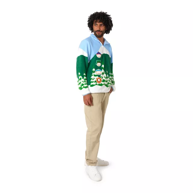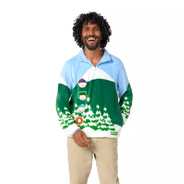 Howdy ho! Ready for some mischief in South Park? With this officially licensed quarter zip sweatshirt, you can show off your love for the quirky antics of Stan, Kyle, Cartman, and Kenny! This cozy piece is made from super soft fabric and is perfect for keeping warm while you enjoy your favorite episodes or hang out with friends in snowy Colorado.