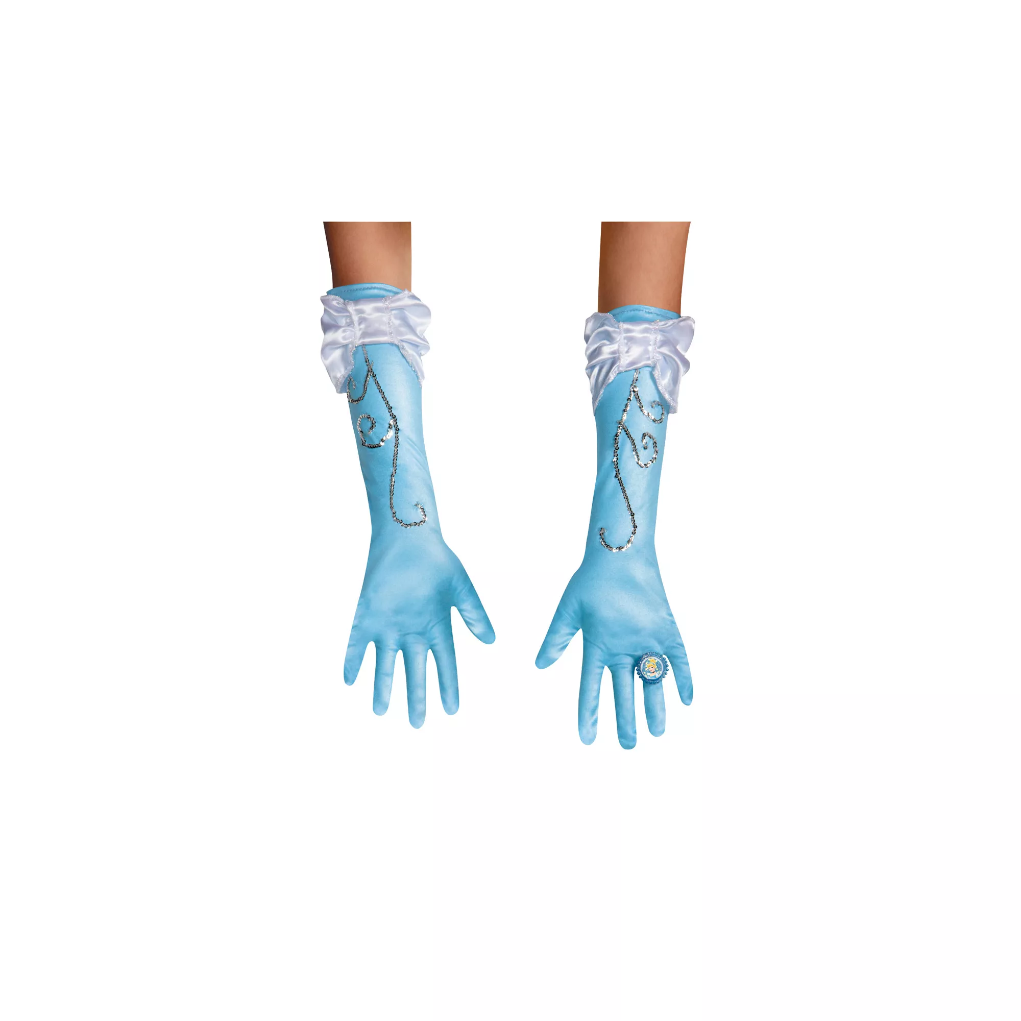 Everyone will want to kiss your royal hand when you wear these officially licensed Disney Princess Cinderella Sparkle Gloves. Baby blue long elegant gloves are embellished with sequins and bows.