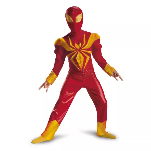 With a little help from Tony Stark, you'll be virtually invincible in this officially licensed Spiderman Iron Armor Child Costume. The red and yellow jumpsuit features muscle torso and arms, complete with a matching character hood.