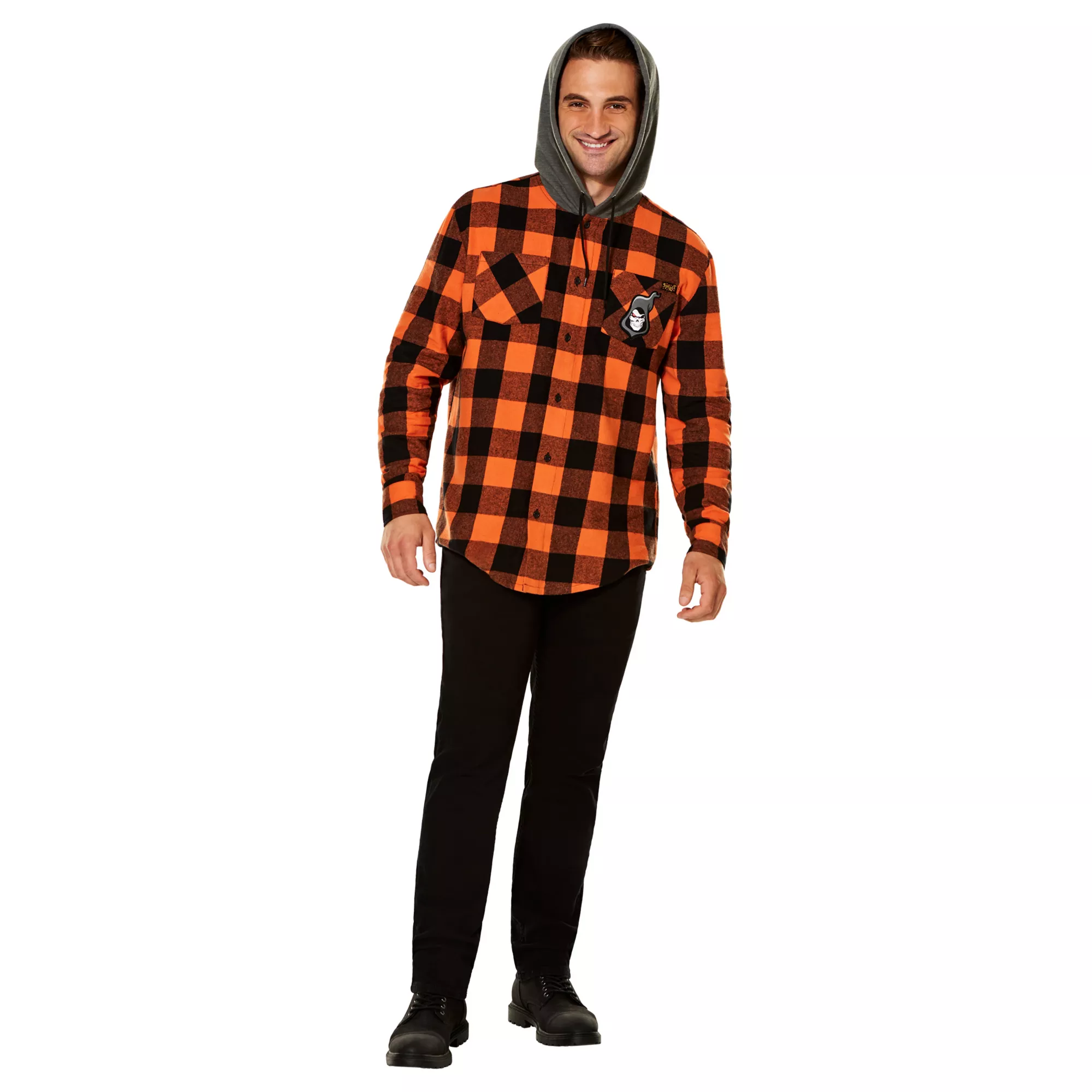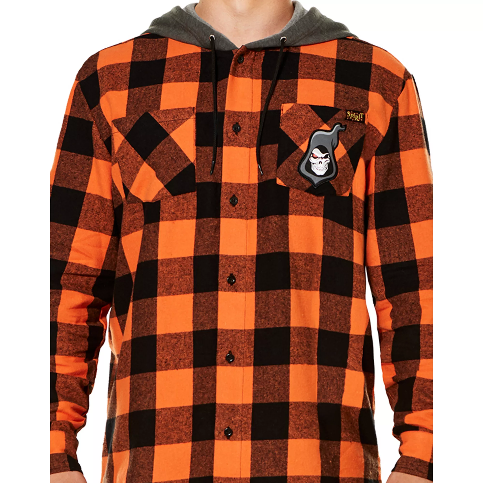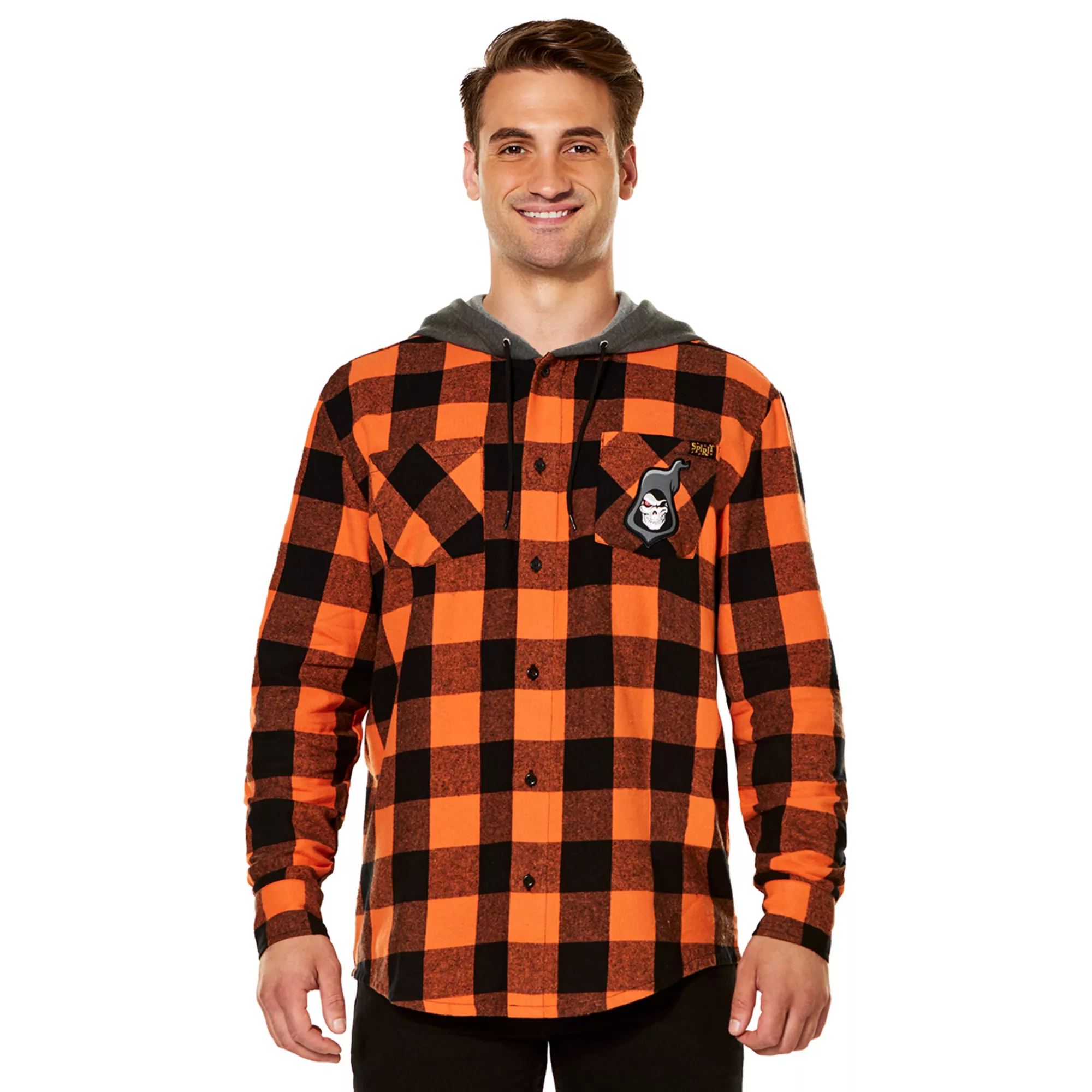 We're so fun, it's scary. Show love for your favorite brand and upgrade your wardrobe when you get this officially licensed Spirit Halloween Flannel Hoodie. Keep cozy and celebrate Halloween all year long!