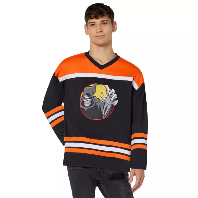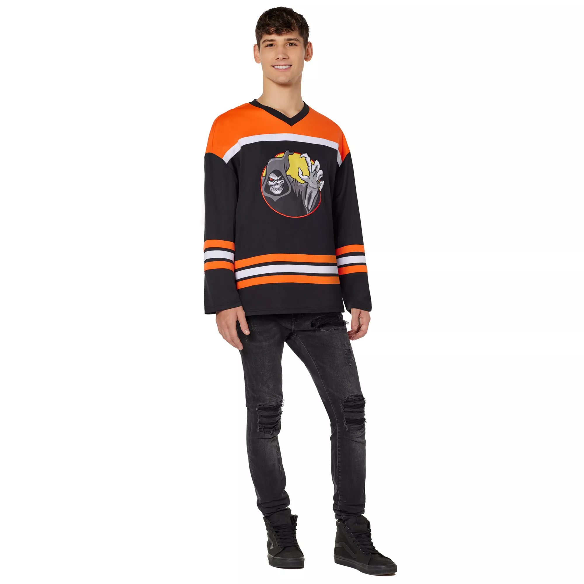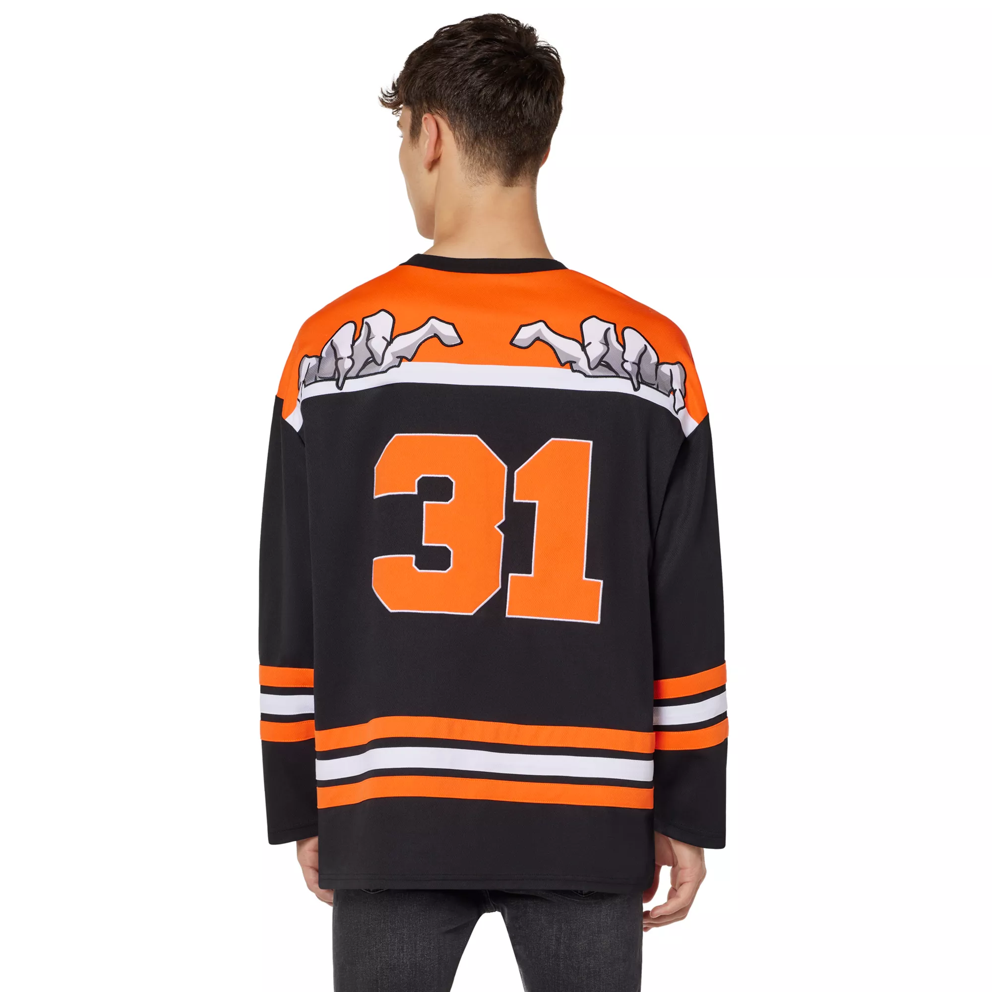 Rep your favorite store year-round with this Spirit Halloween Hockey Jersey! This black and orange jersey, which sports the number 31 on the back, will complement the wardrobe of any Halloween fanatic.