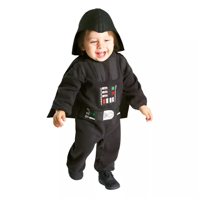 Strike terror in a galaxy far, far, away or just around the nursery when you dress your little one in this in this officially licensed Star Wars Darth Vader infants costume legendary Darth Vader costume. It includes a character headpiece and a romper with a detachable cape - cool!